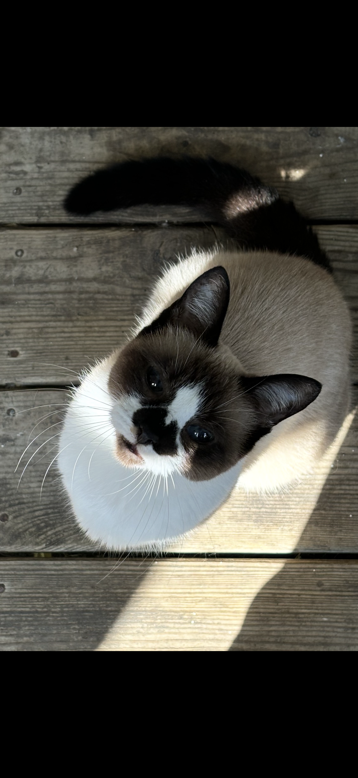 Snowshoe Siamese mix, very friendly, but timid outside. Mostly blind. -