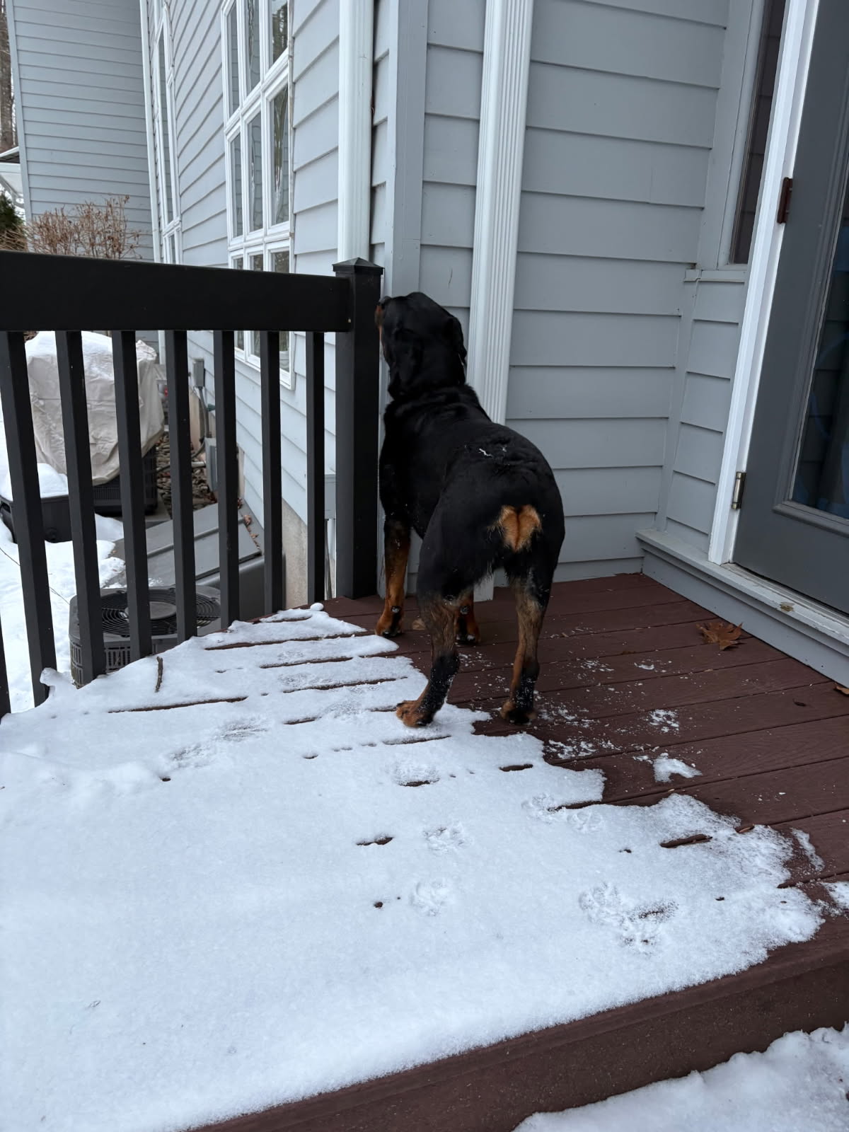 A neighbor found a rottweiler on their back porch on Still Hollow, off of north Fostertown. There were 2 dogs but one ran off. He has one of them.