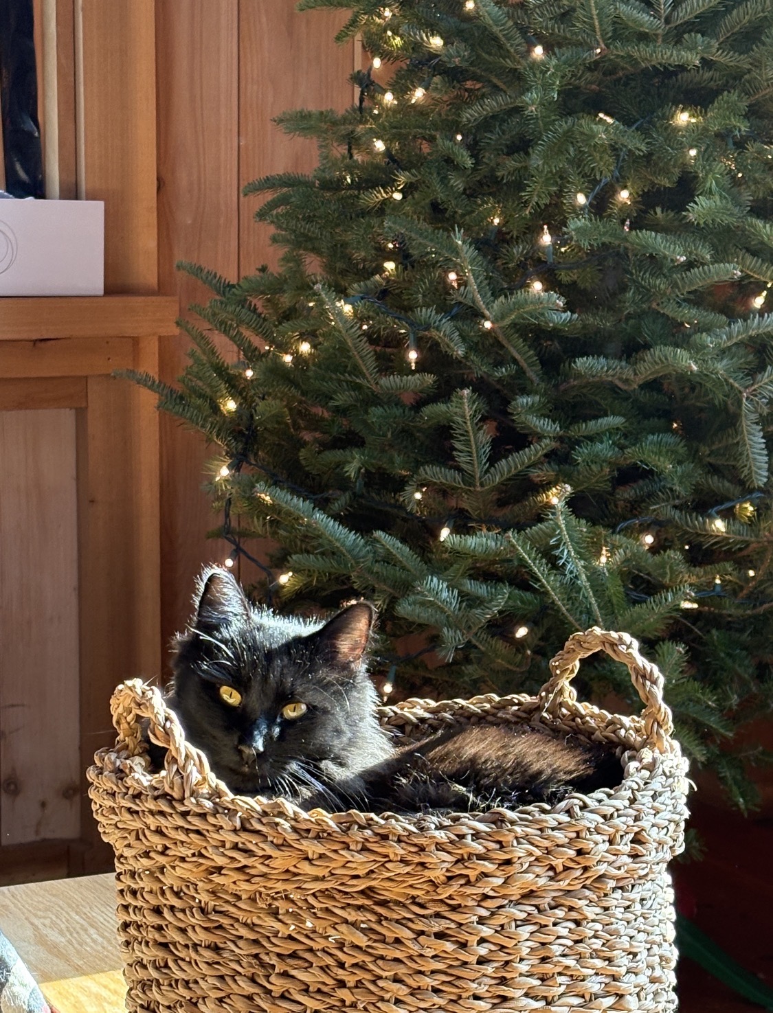 Juna is a 10 month old all black fluffy cat with an extraordinary tail.