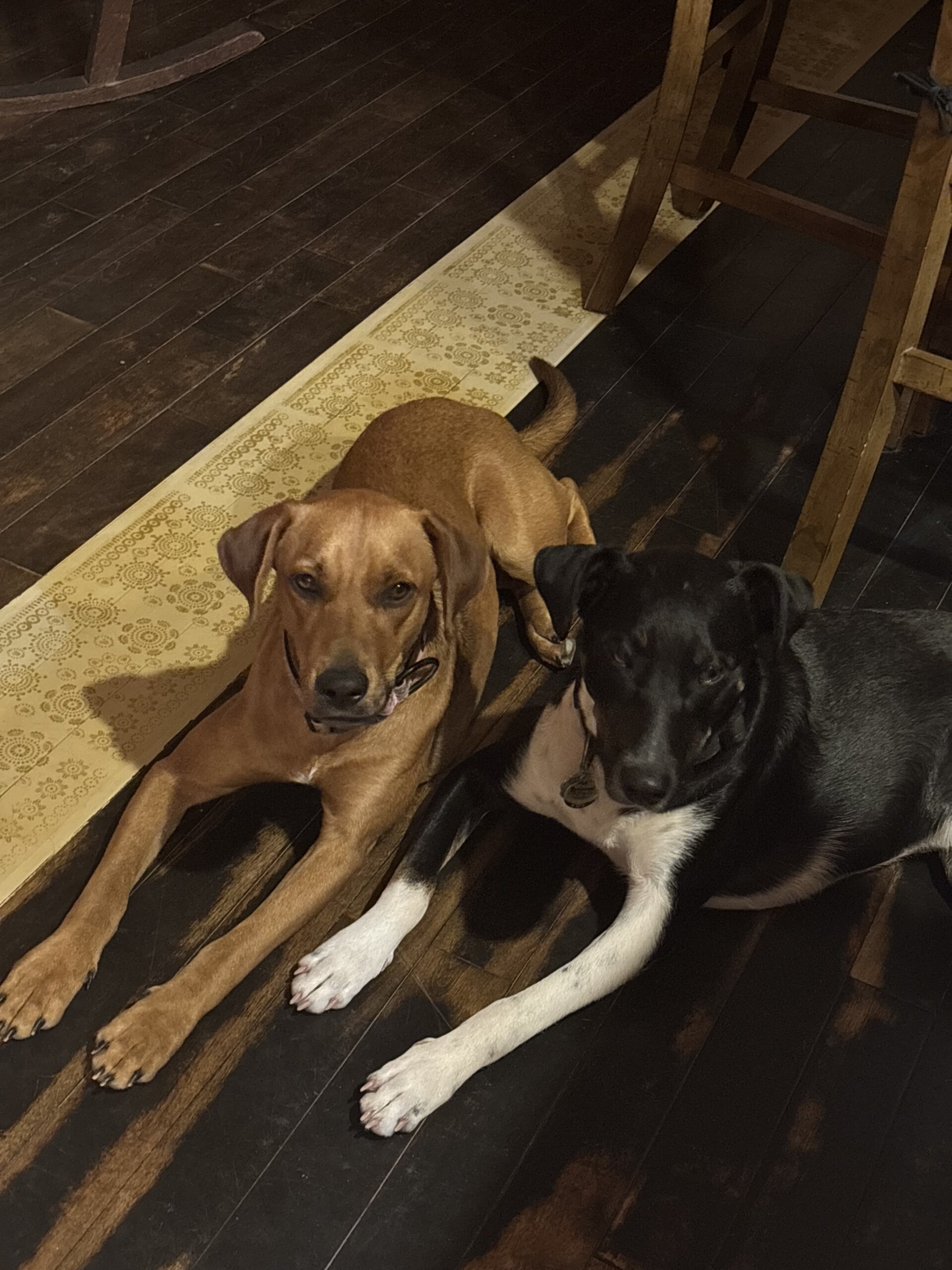 My two dogs both around a year old one black one tan have been gone for four hours. The female, Ella has my phone number on her collar. The male Ryker, he’s very timid and will not come to you.