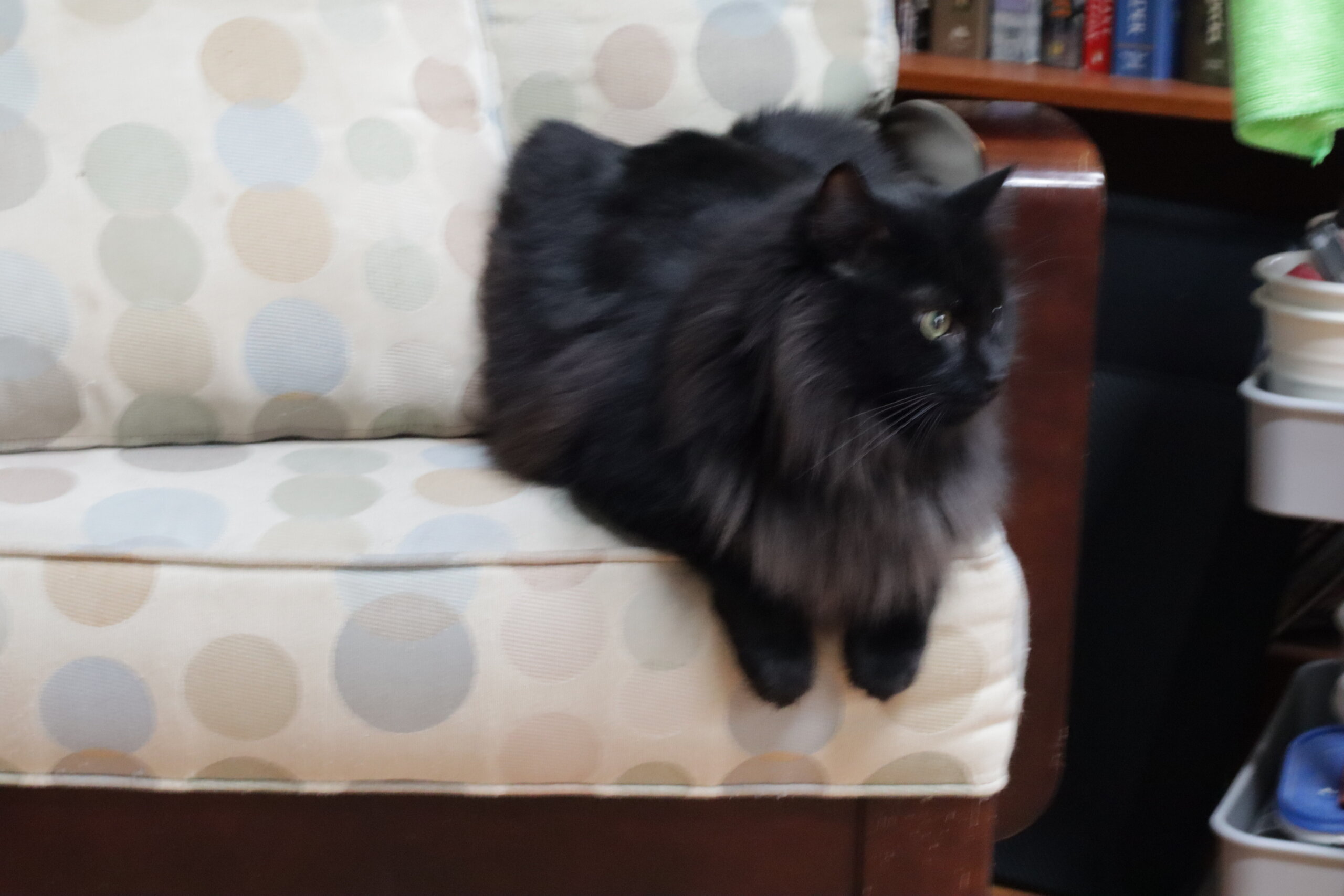 Our black fluffy long haired cat named Wee-Bey ran out of the house during the storm yesterday afternoon. As of Monday morning he has not come back.