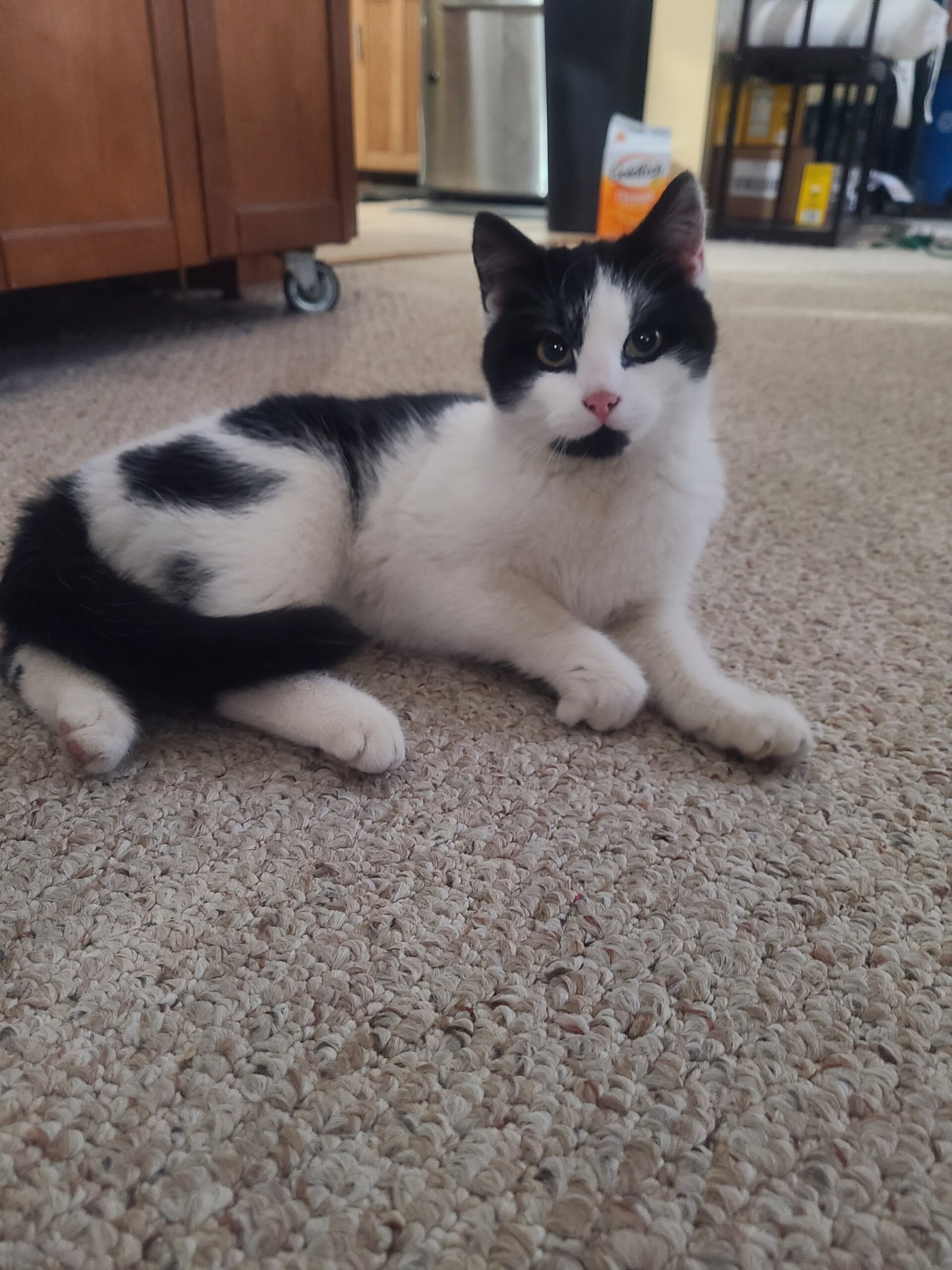 Found on Diddell Road near the end of Pine Ridge Rd. She is young, only a few months I think. A little skittish at first but then warms up. Definitely likes to be near people, but no collar.