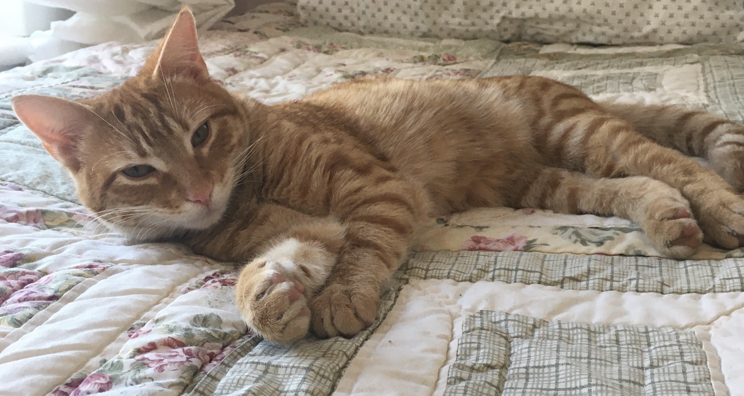 Arrow, 9 mo old orange male tabby cat. He has a white chin and chest, white around eyes, recently neutered so still had short hair on belly and backside, his tattoo is visible on belly and his is still healing on his backend. Healing scratch across nose. Last seen in my yard on the corner