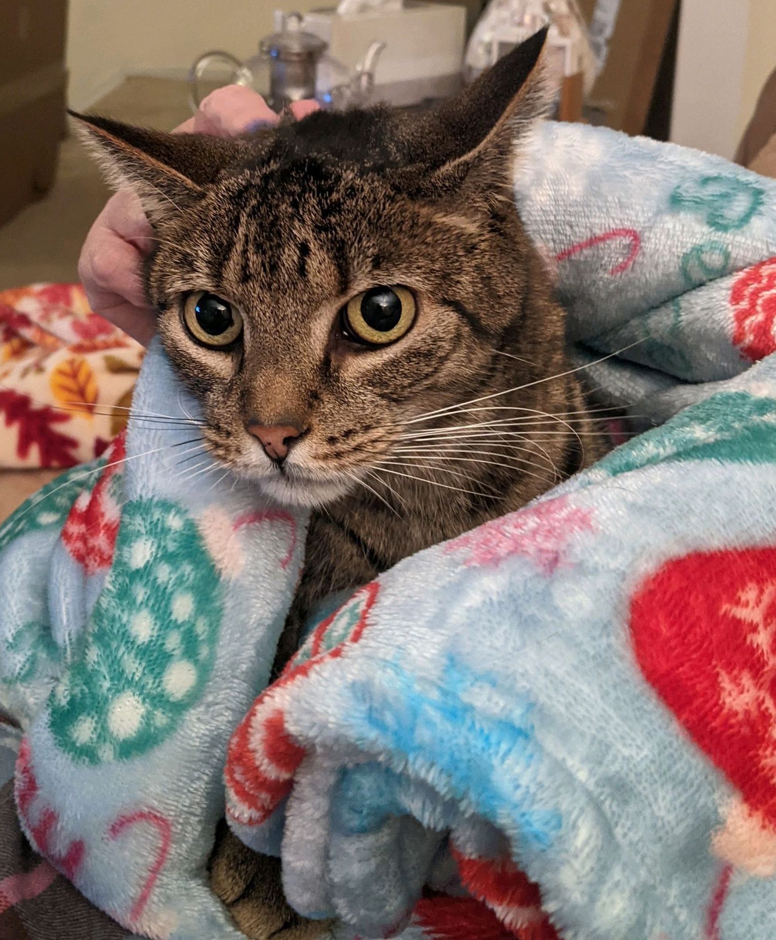 Lost calico cat, 1 year old, spayed, has microchip.