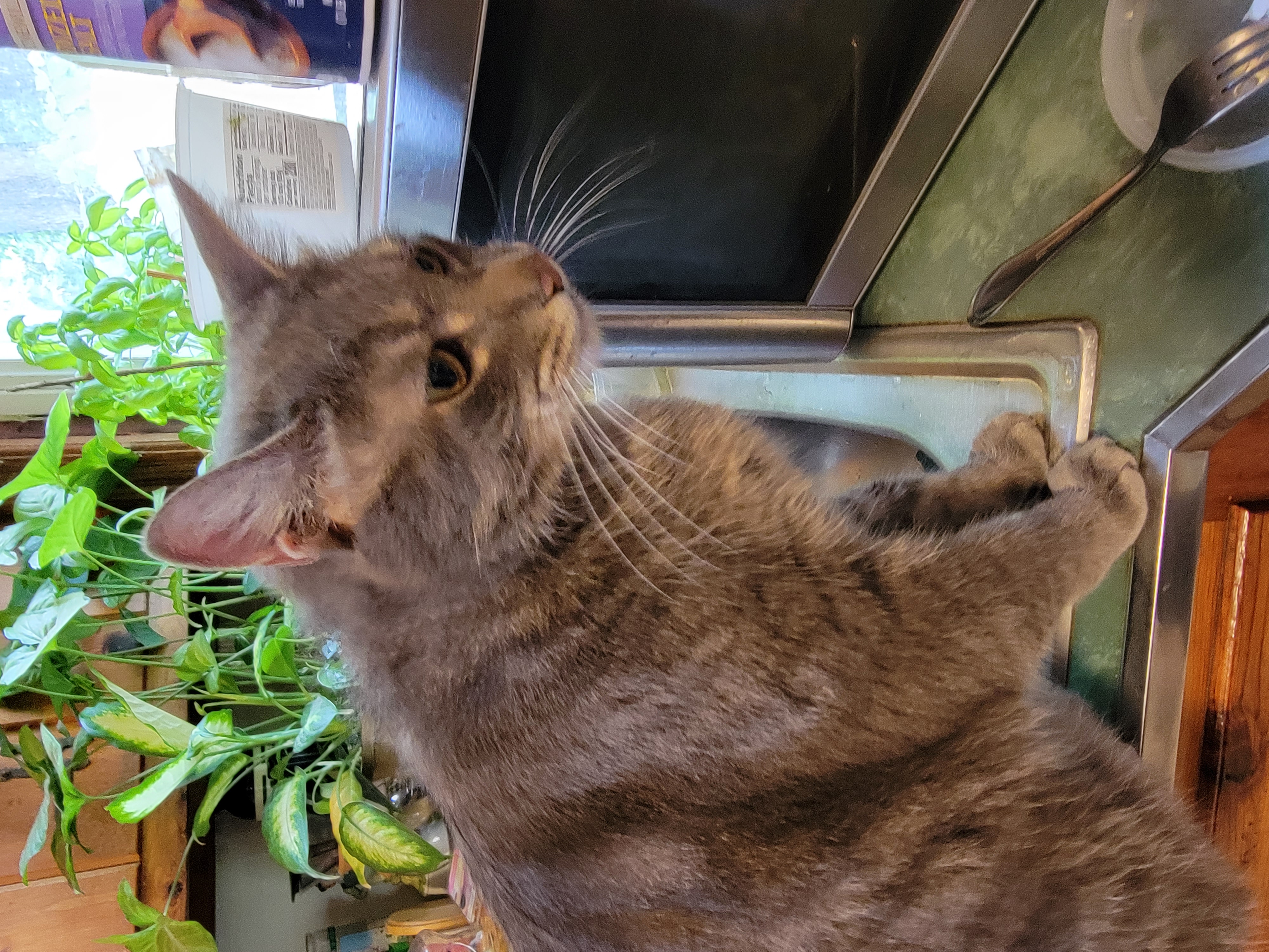 This gray cat showed up morning after Ida. I have not caught yet but has stayed here since storm.
