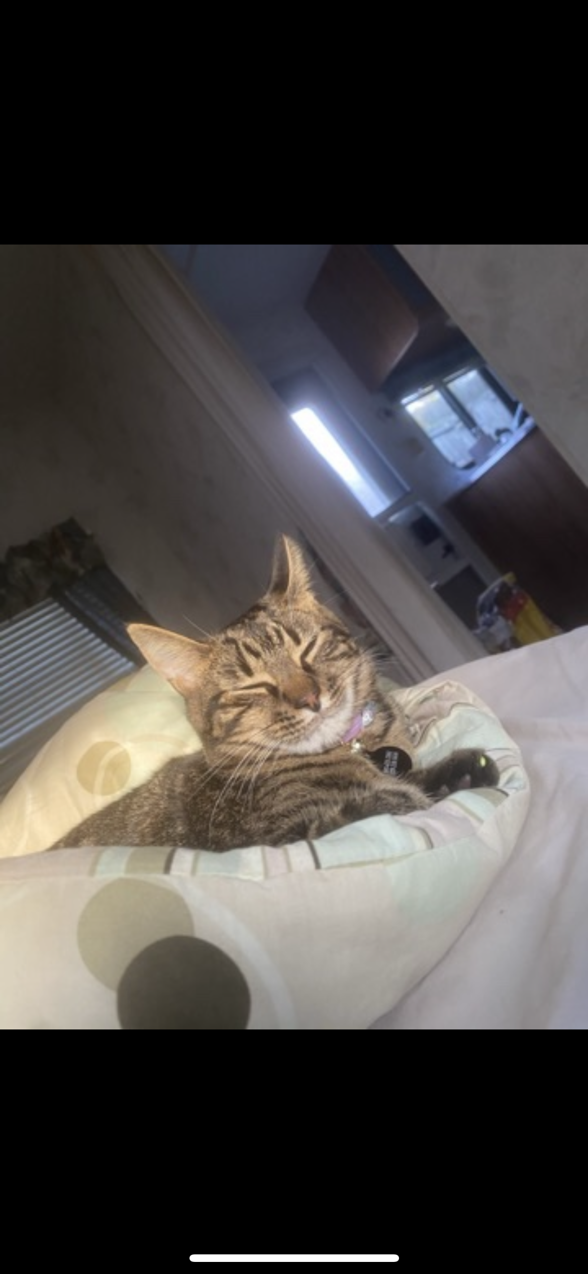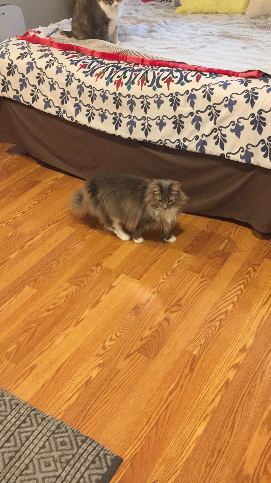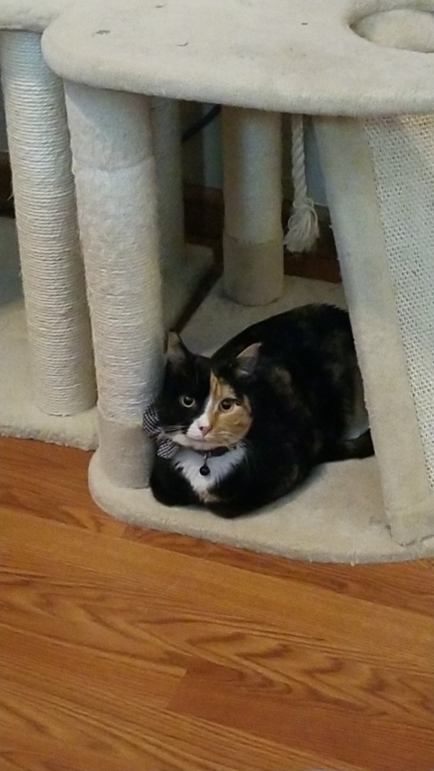 Her name is Frost and she's a calico cat. She's a little skittish.