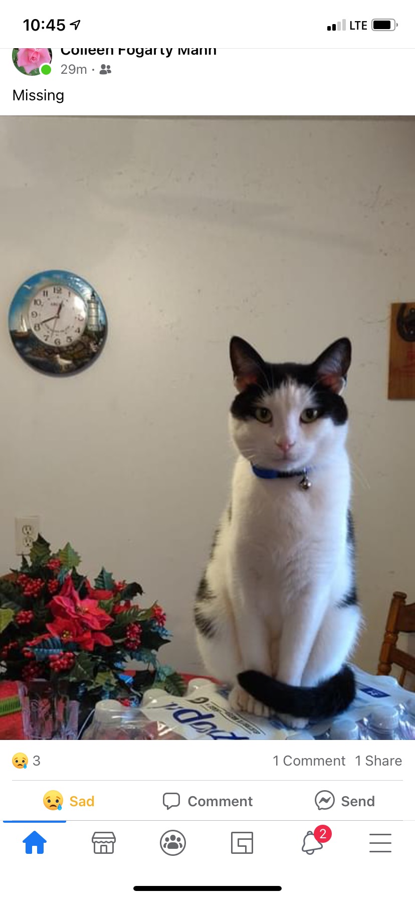 My sister's cat got out of her house on Wednesday and has been missing since. His name is Hennessy. He lives on Washington Ave in Kingston. Please help find him....