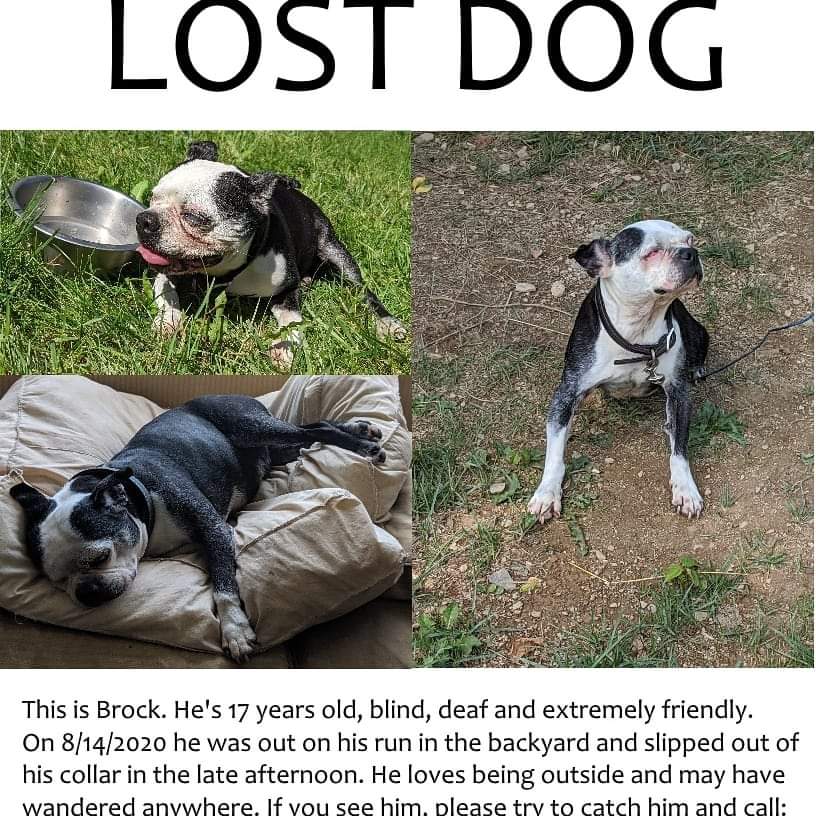 Posting for a friend in Mahopac NY - 17 year old, deaf & blind neutered male pug missing. Slipped collar last night while in yard and wandered off. Family & friends are desparately looking for missing dog named Brockie. If you reply to me, I will contact owner Ro Mytich immediately. Thank you.