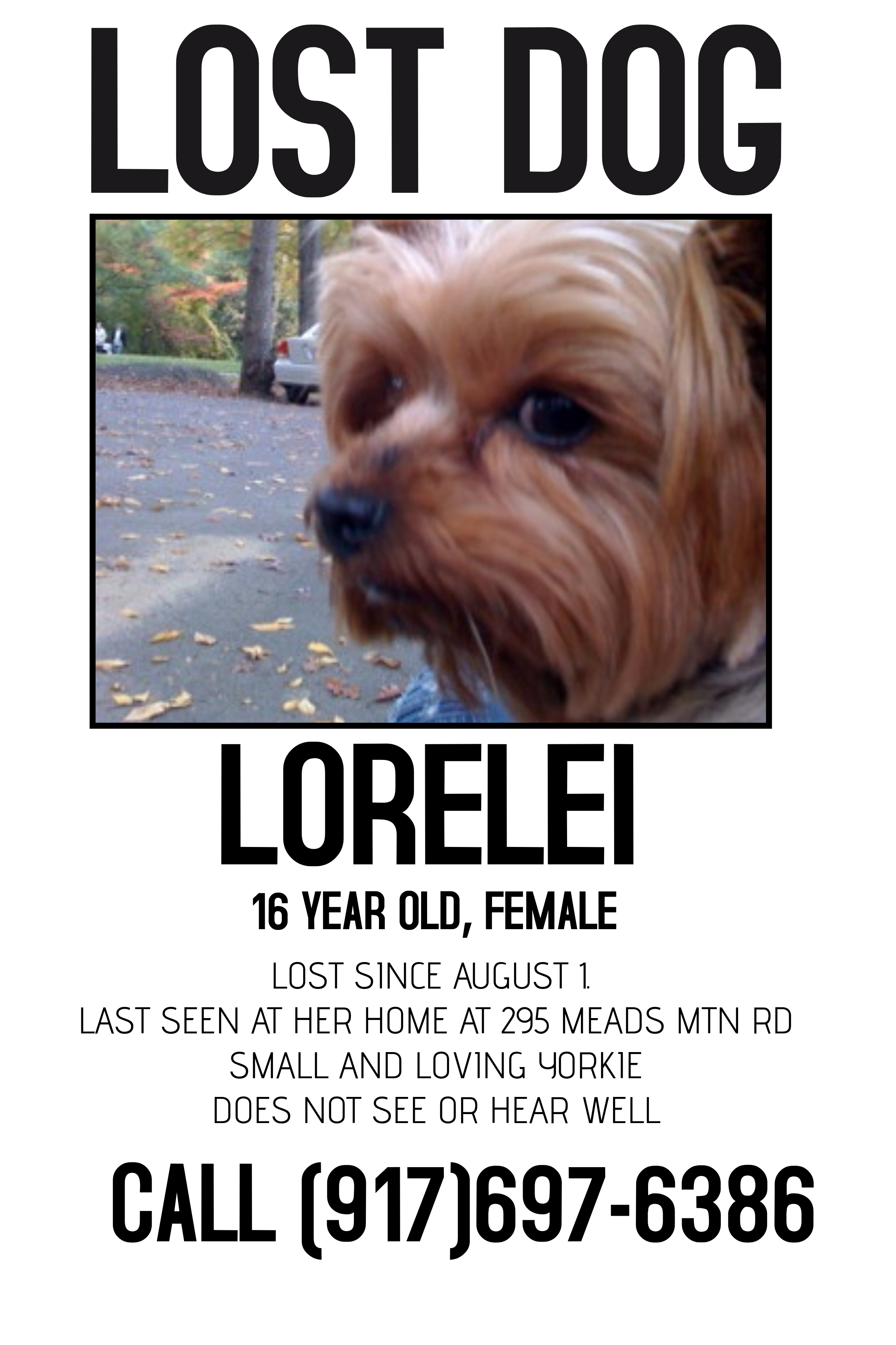 Dog needs daily medication. Lost in Roscoe, NY near the Red Rose Motel.