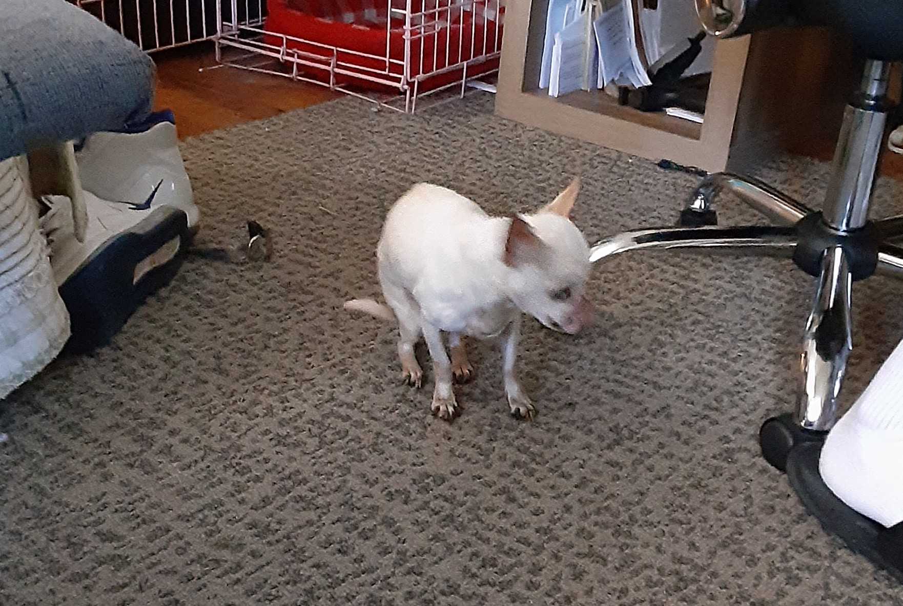 Missing dog got out of house in Tillson on River Rd. Please help find her, she is a white Chihuahua.