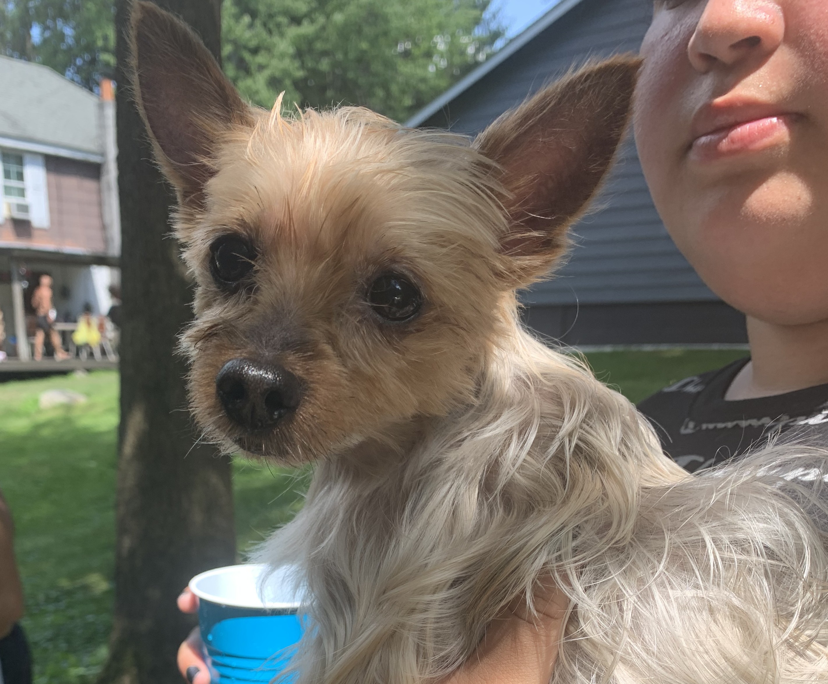 Small white Maltese named Dunkin. Not wearing collar. Was told that a woman driving by picked him up on Locust Avenue. Was likely picked up betwee 12:30 and 2 pm today 7/25/2020. Photo taken last night.