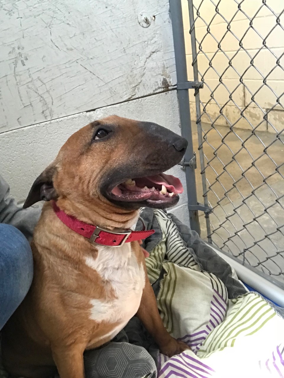 Friendly older black and white Pit mix who loves food, rides in cars and hanging out.