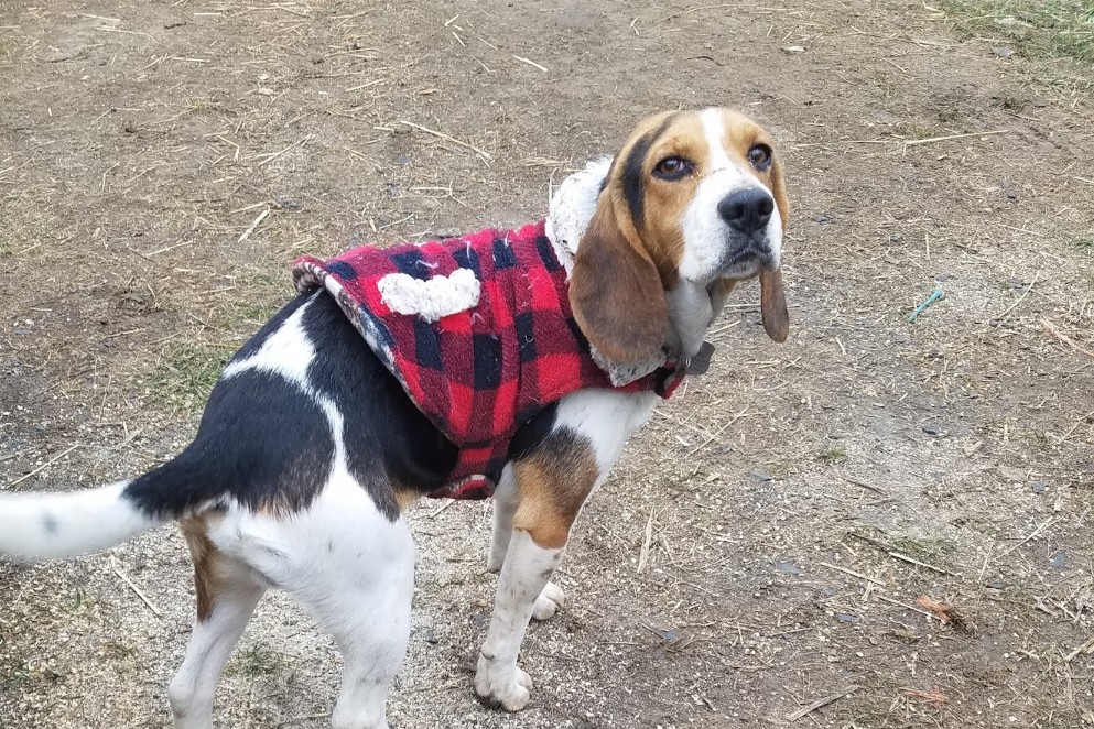 Lost dog. Black and white and spotted beagle/basset hound...4 years old. Has medical issues. Lost on Saturday April 25 around 4 pm. Bull Mill Rd and Quarter Ave area.