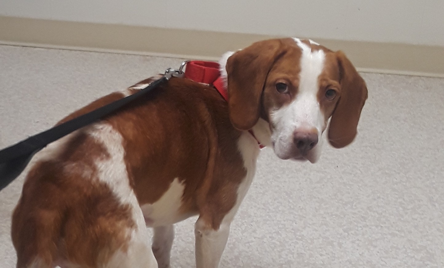 Beau is a hound/beagle mix. He has a red collar and tags. His black leash was on him when he ran out the front door and into the woods. He is not aggressive.