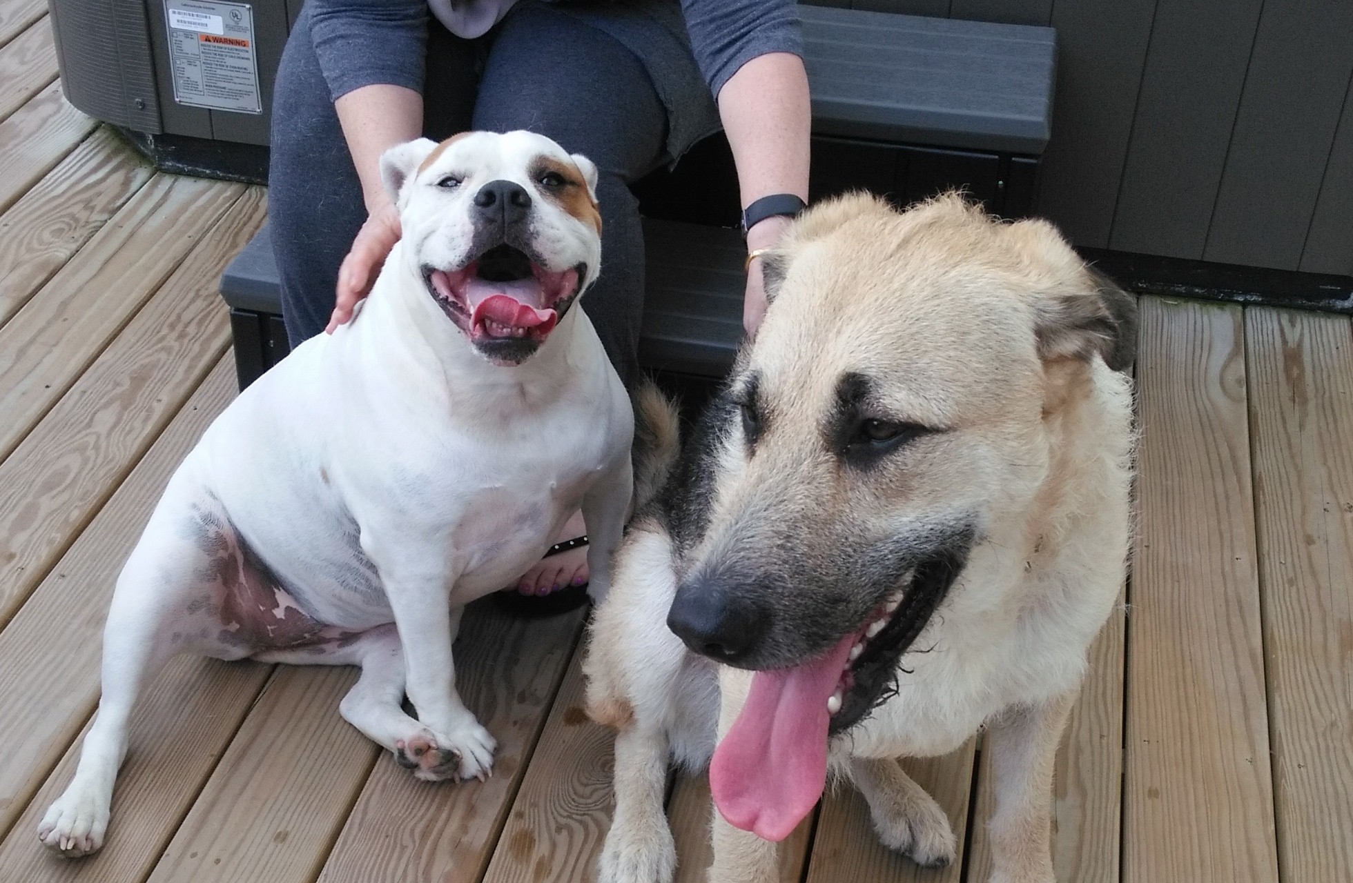 Two dogs wandered out of the woods behind my house in Wappinger. Male German Shepherd mix, and female bulldog mix. Both very hungry and thirsty. Nervous, but very friendly. Male has a red collar but no tags.
