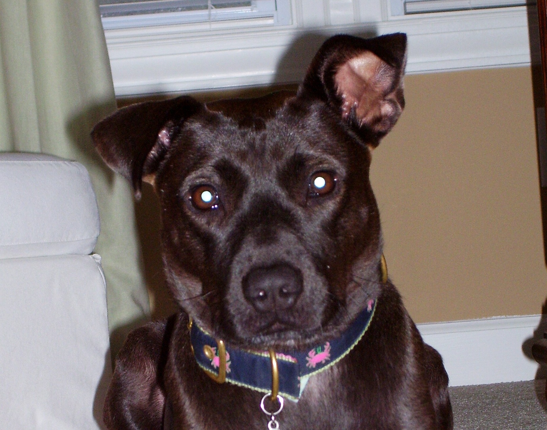 We lost our 16 year old lab mix this afternoon. She is 16, deaf, and suffers from seizures. Her name is Saks. She is very friendly and not skiddish. We are heartbroken.
