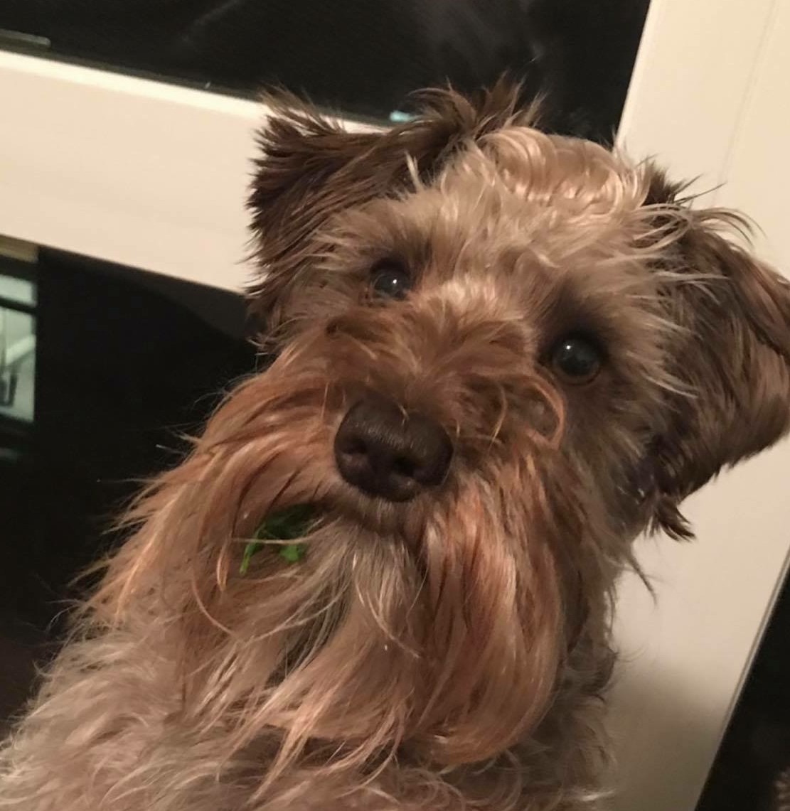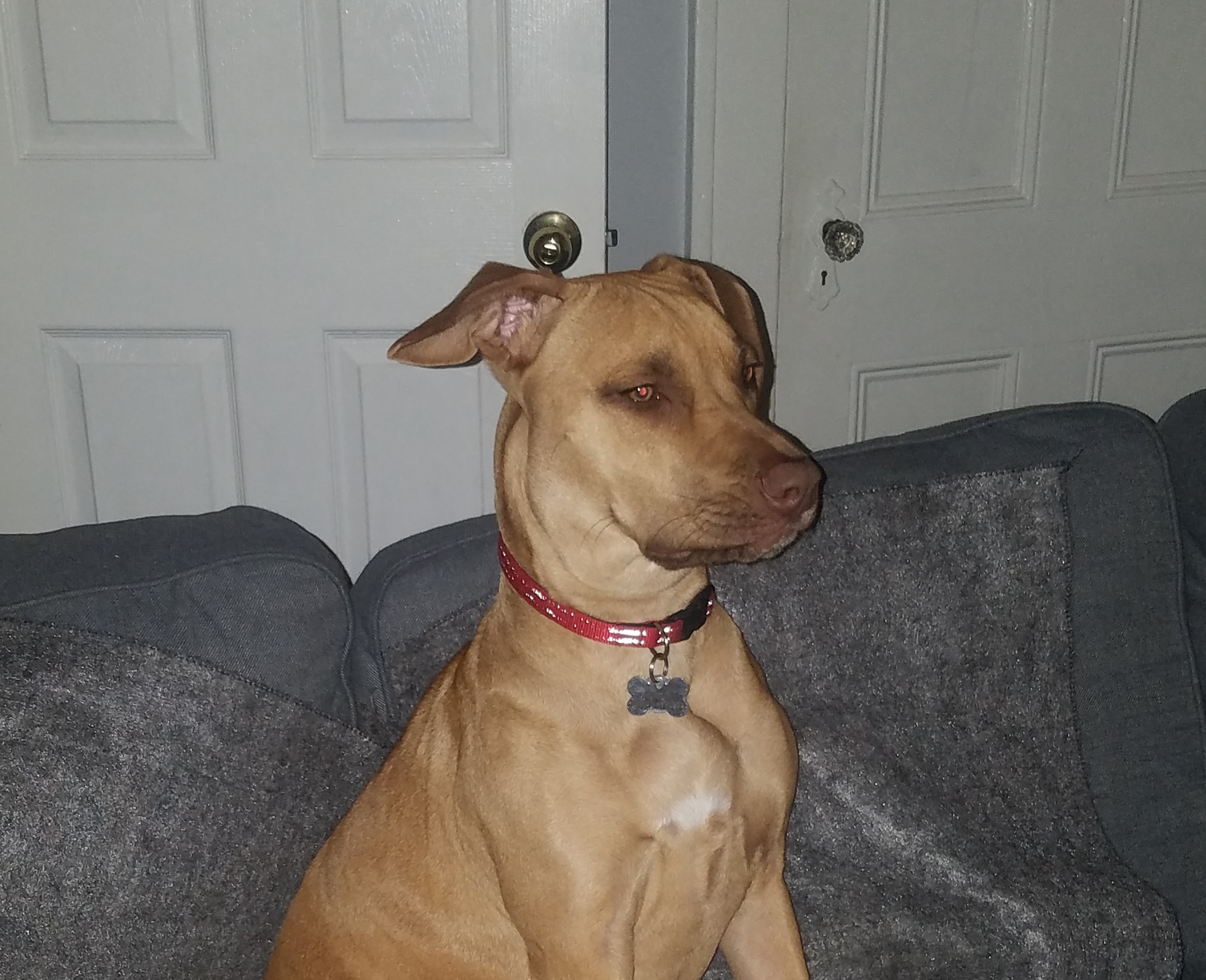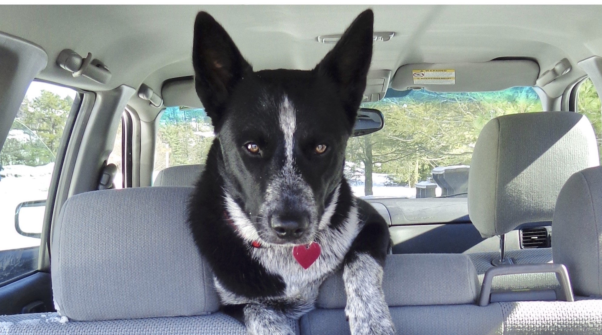 Sassy, independent, hyper alert. Australian Cattle Dog/Husky mix. Big huntress.