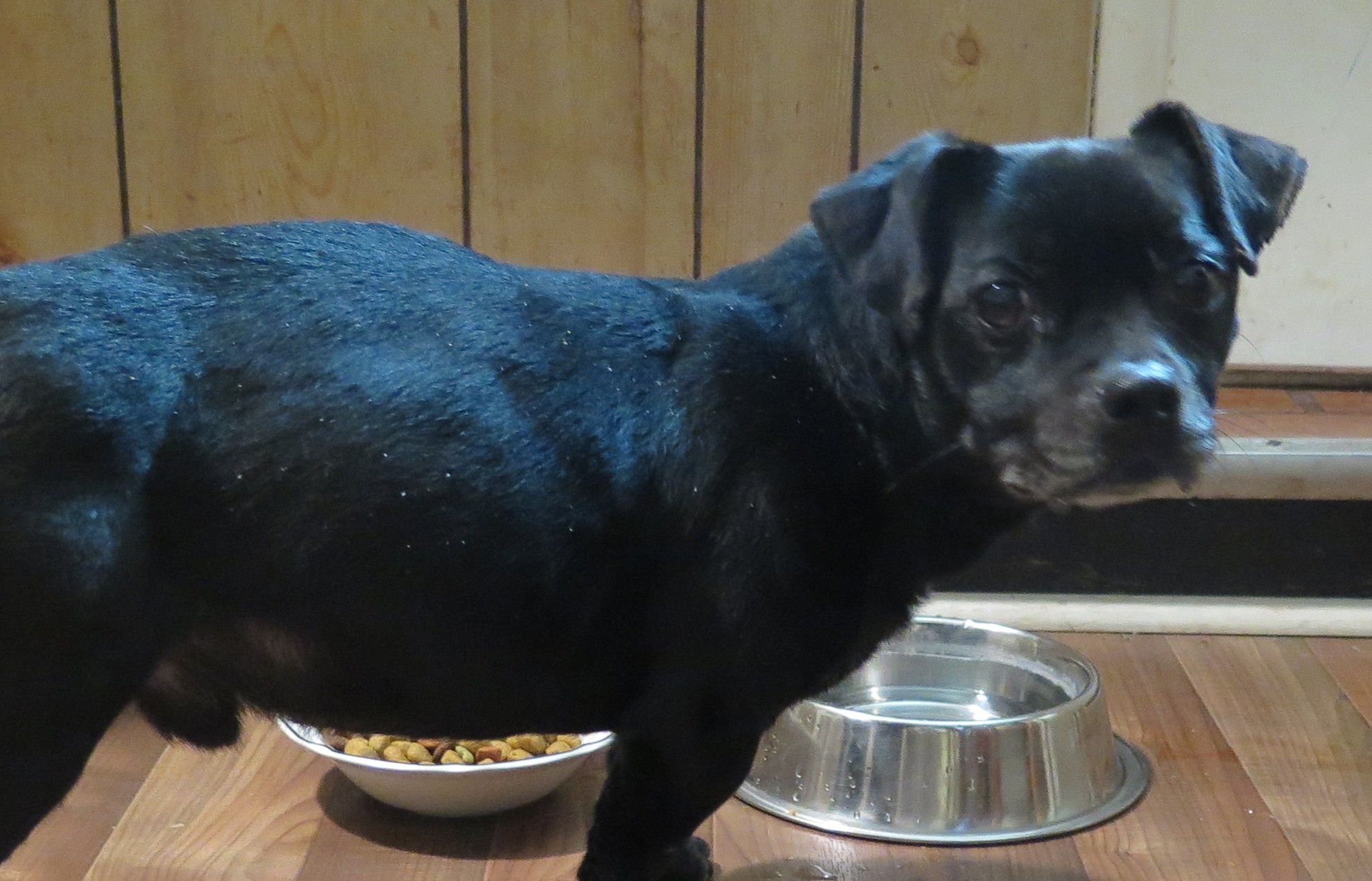 Found Dog: Black, Male, small breed, short hair, very friendly. Found Monday evening 8:00 pm at the corner of Route 199 E and Echo Valley Road in Red Hook, NY. No tags or collar.