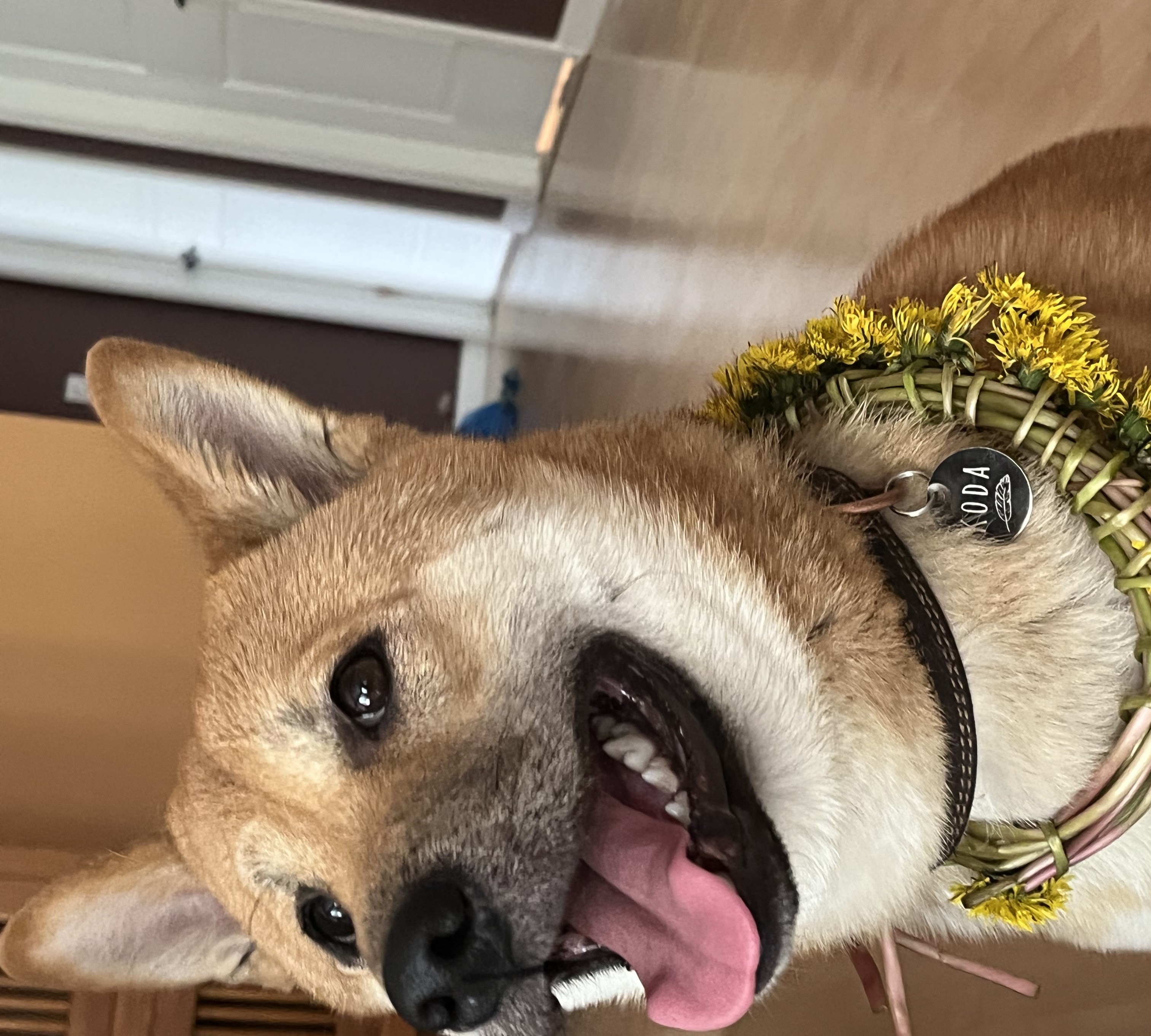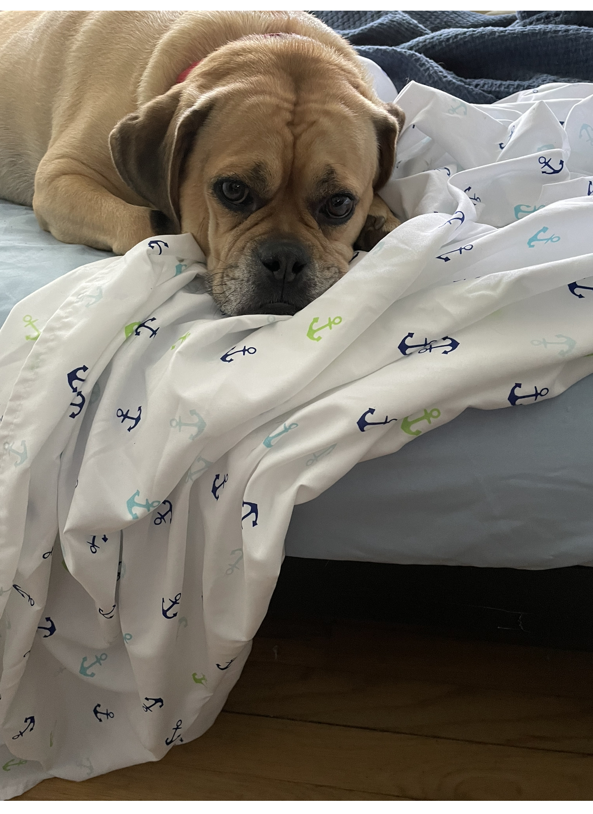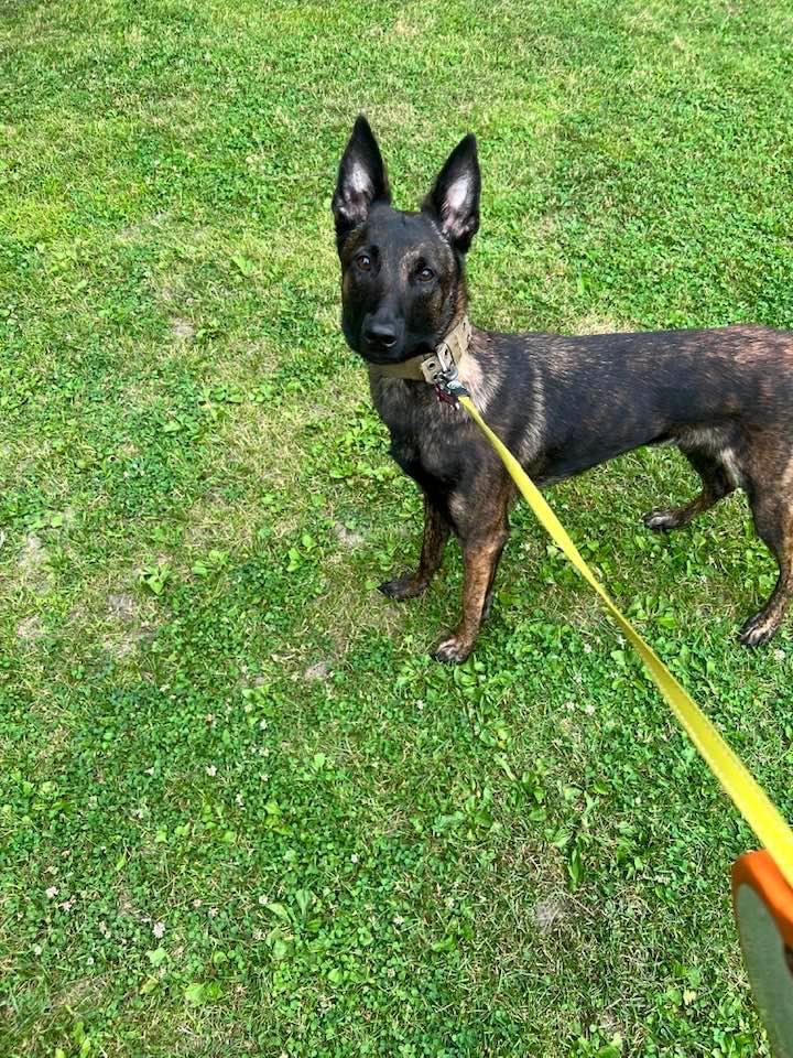 Friendly pitbull on my deck this morning, will be picked up by Olive dog warden in about an hour. Green collar, no tags.