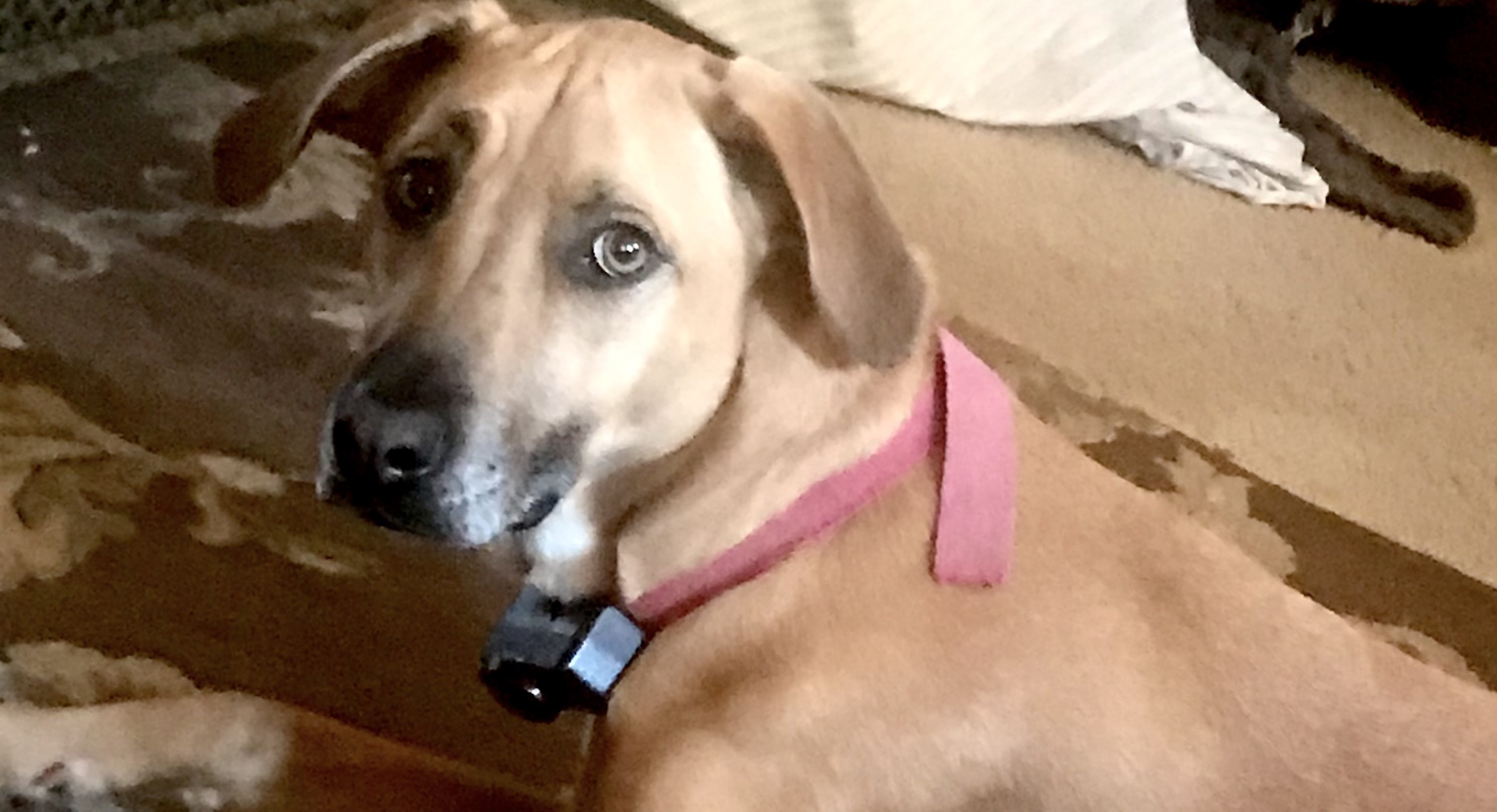 My dog, Dutchess, went missing. Not sure if the wireless fence collar battery died or damaged. She is high energy and friendly. Her new collar is black not red as in picture.