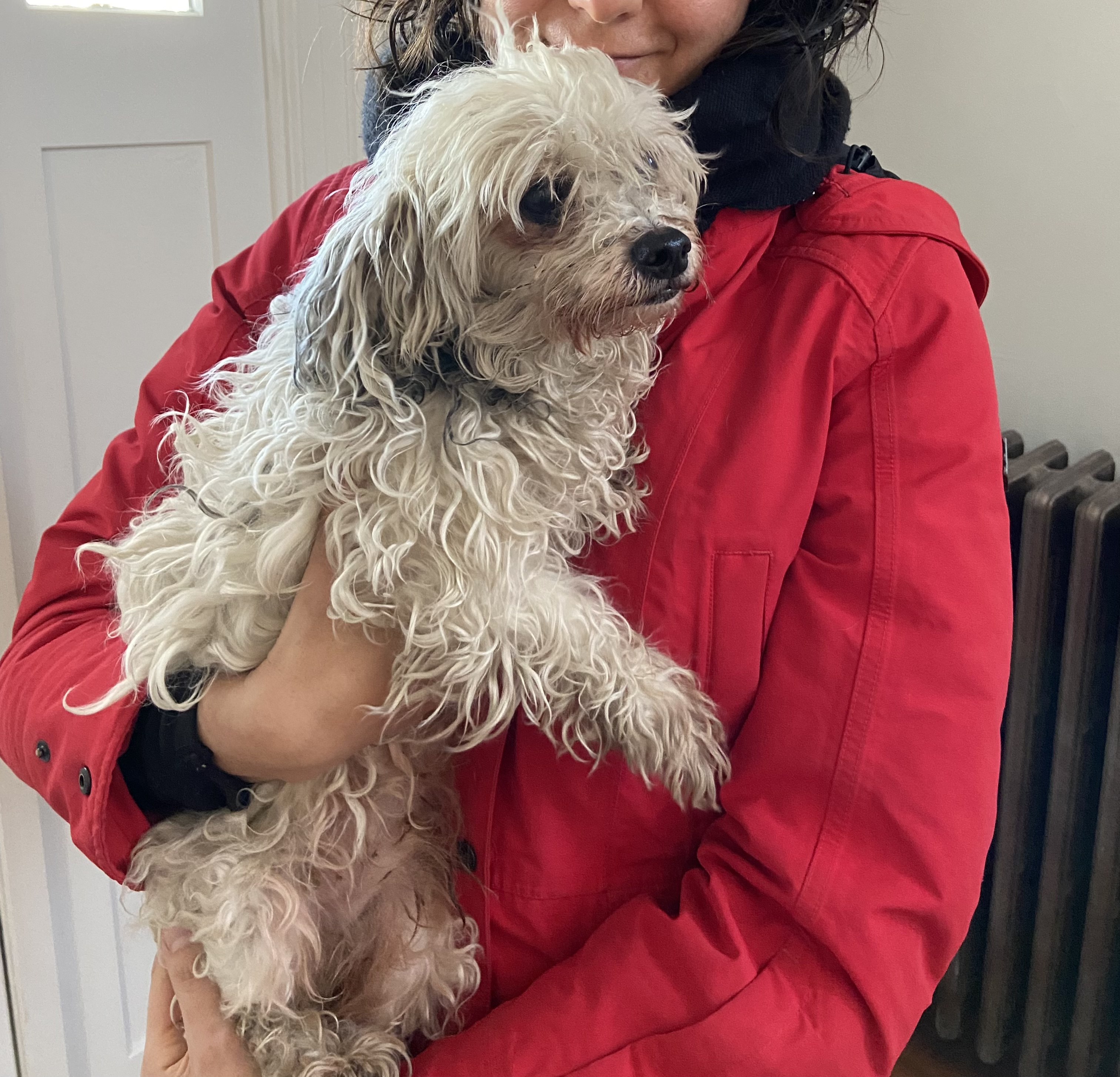 Small dog, mostly white with some black patches, curly hair, approx.10 lbs, poodle/shih tzu (?) mix, neutered male (?) found wandering down W. O’Reilly St. in midtown Kingston at 11am today (1/11/22), with no collar or tags. Ulster County SPCA is on their way to pick him up for identification and safekeeping (~2pm.) 845-331-5377.