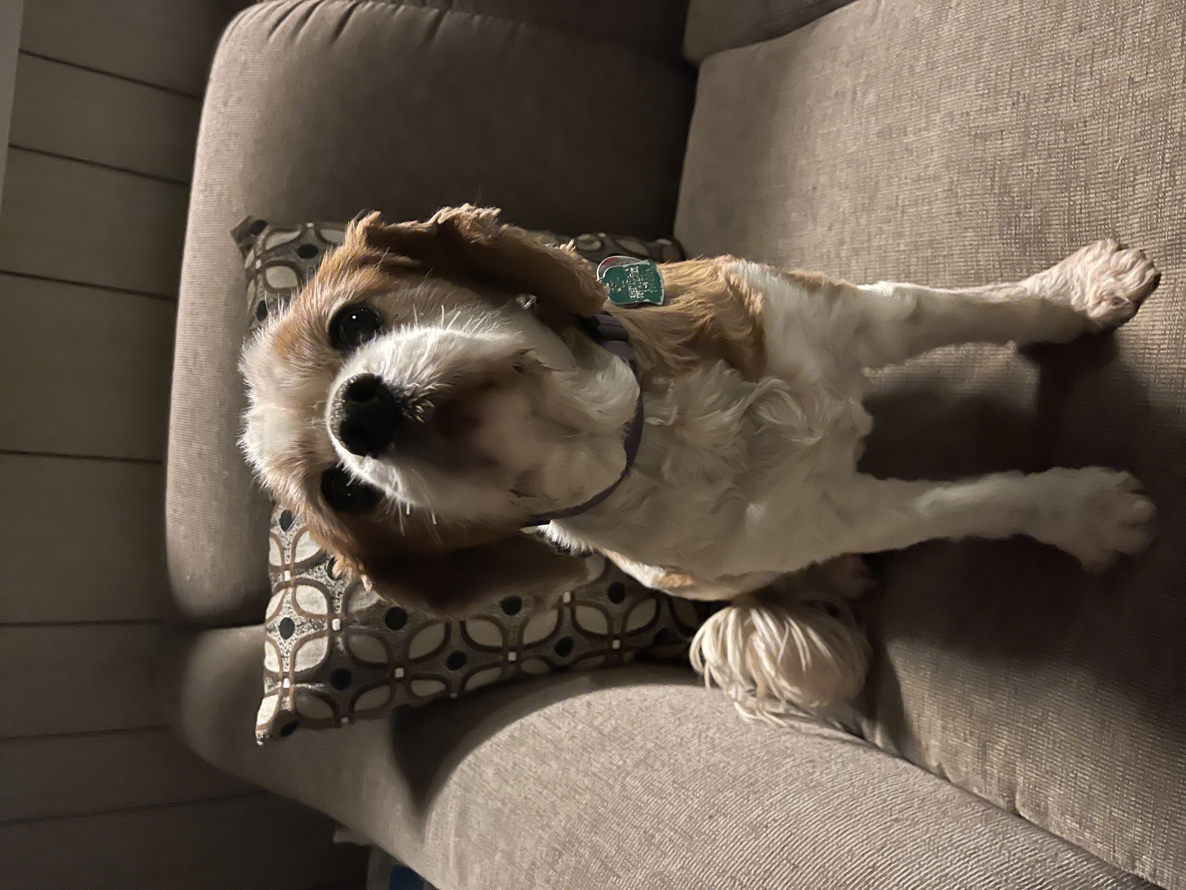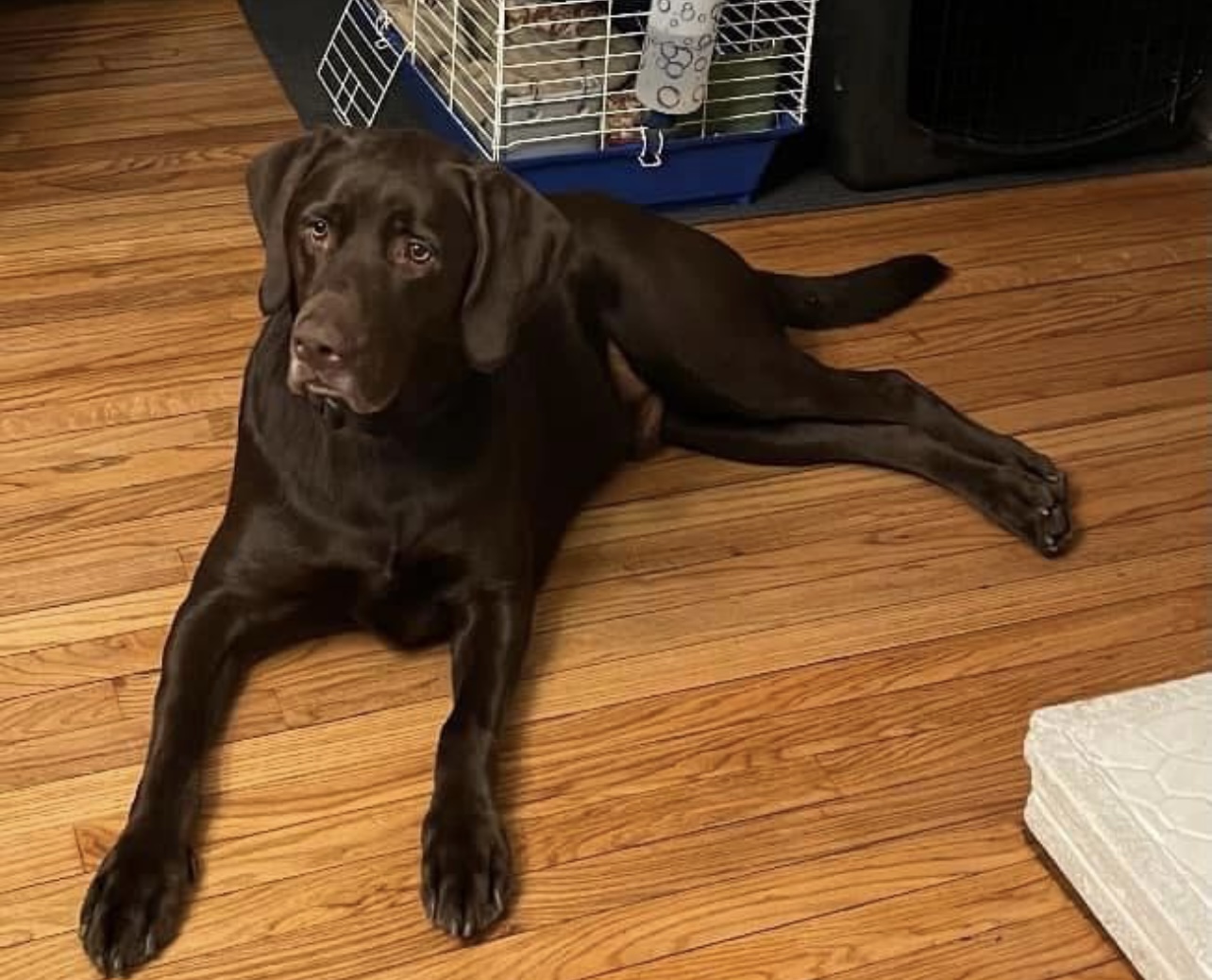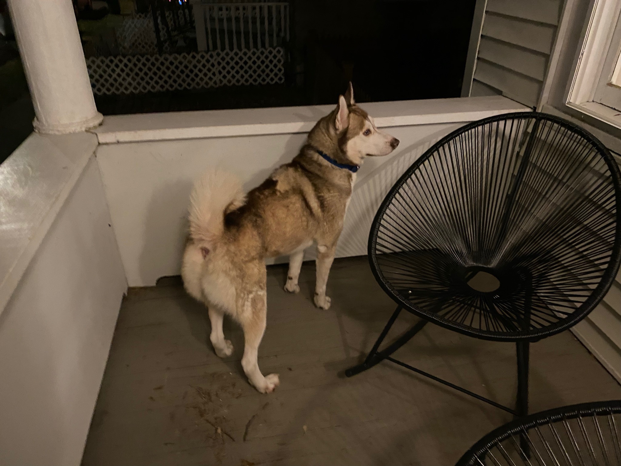 Calvin wiggled out of his leash just before entering Flannery’s veterinary hospital for a check up. He ran across Little Britain Road. He’s very skittish and won’t respond to his name. I’ve only had him about a month. I left food and a blanket for him at the last place I saw him. He is