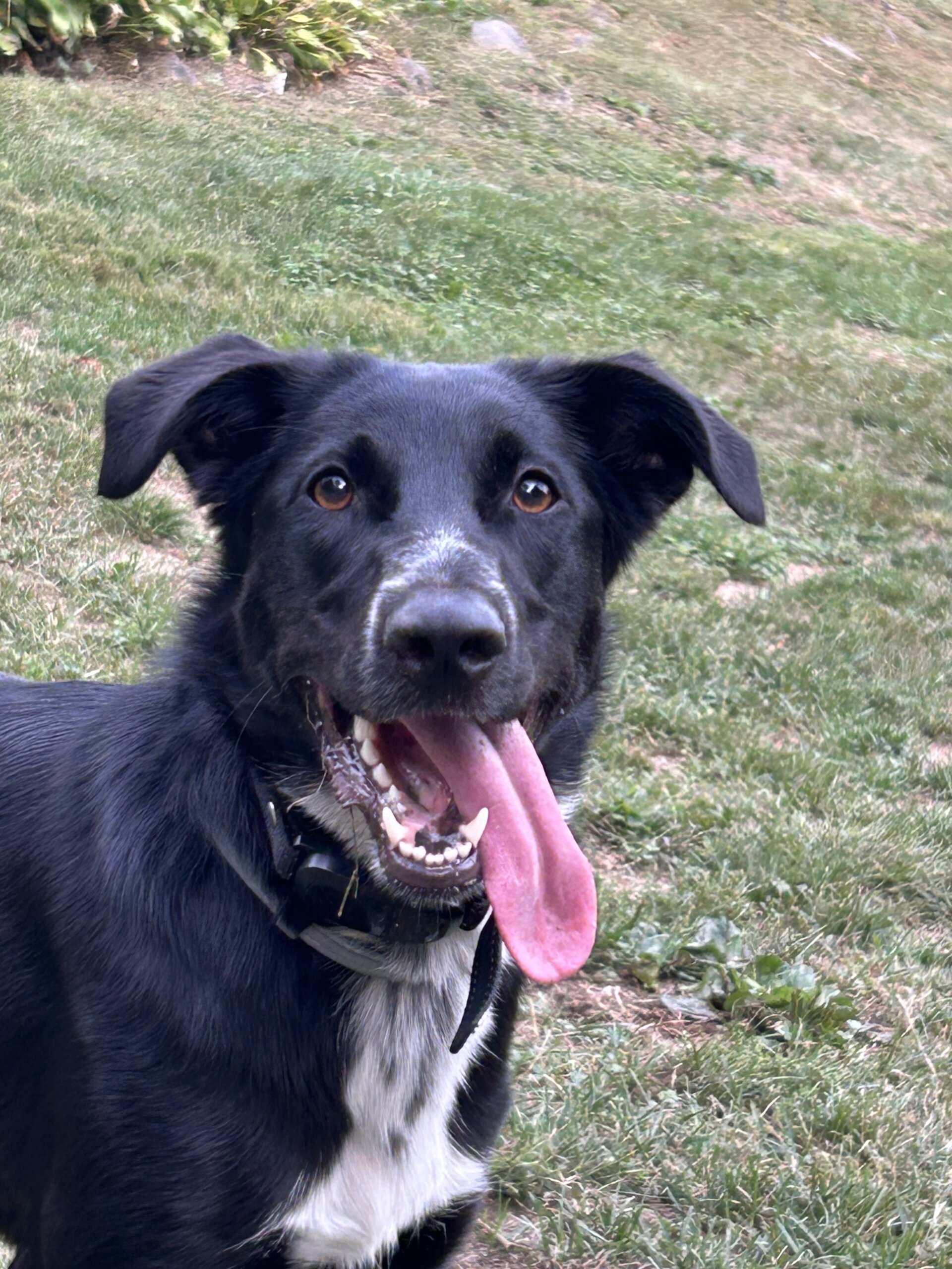 Our dog Puppy got out this morning. We live in Balmville/Newburgh on Sloane Road. She’s a Black Border-collie Mix. She is chipped. She’s very friendly and will come when called.