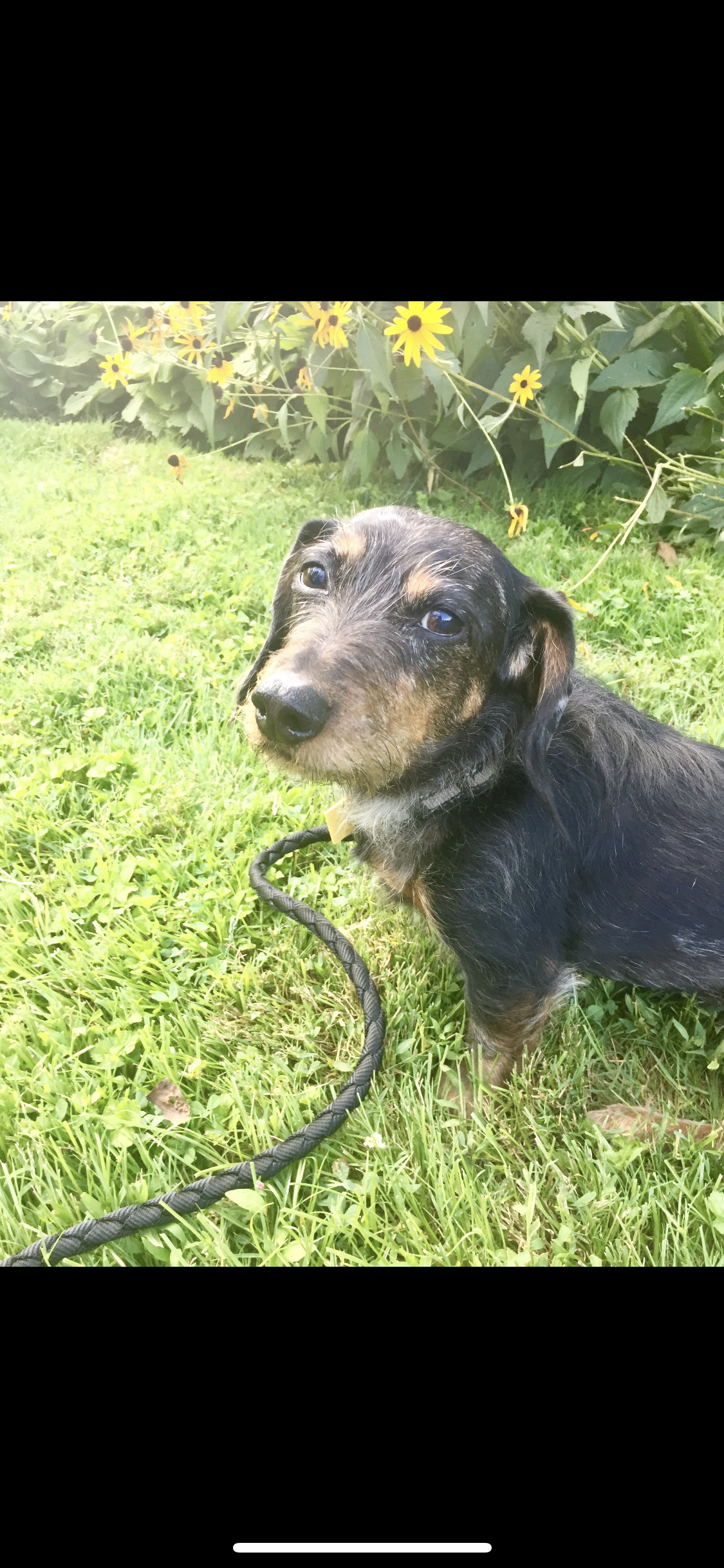 Wire haired dachshund last seen on 4/21/2021 at 3:00 pm around Harrison, westchester county NY. $200 reward for finding her!