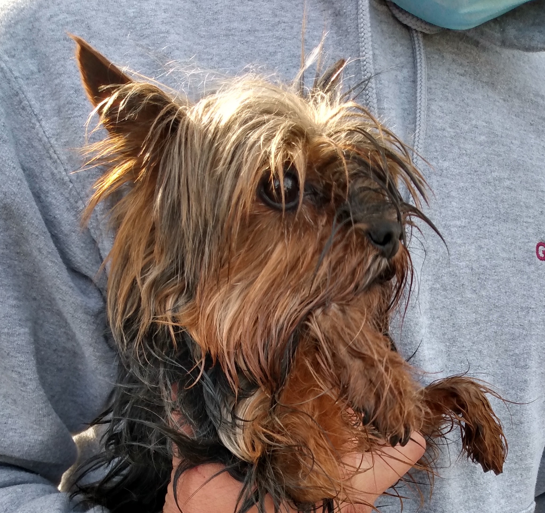 Lost Yorkie found running around in Middletown, close to North Street. He was wet and muddy. Will be taken to animal control to be returned to his family by the Good Samaritan that helped me catch him.