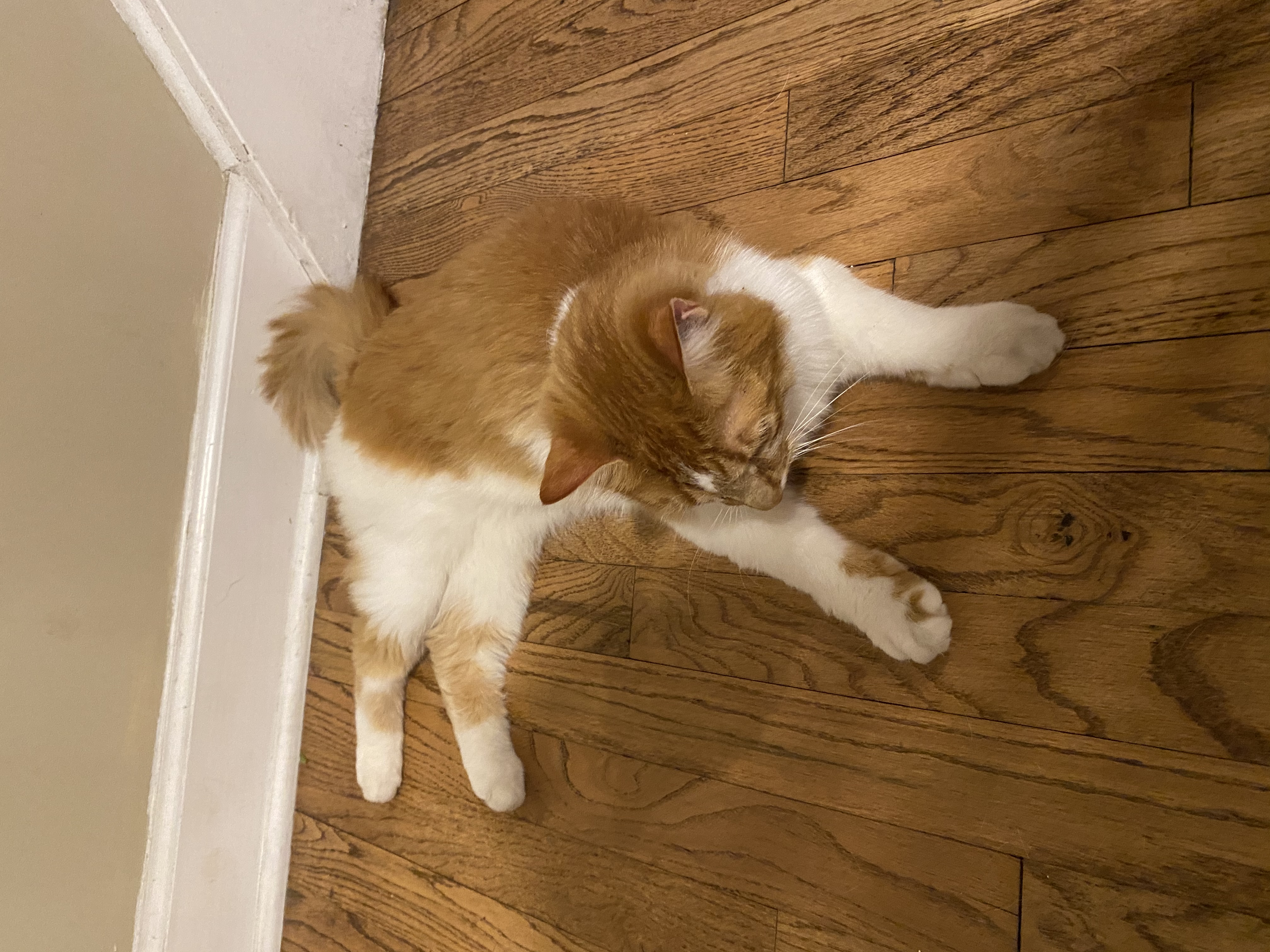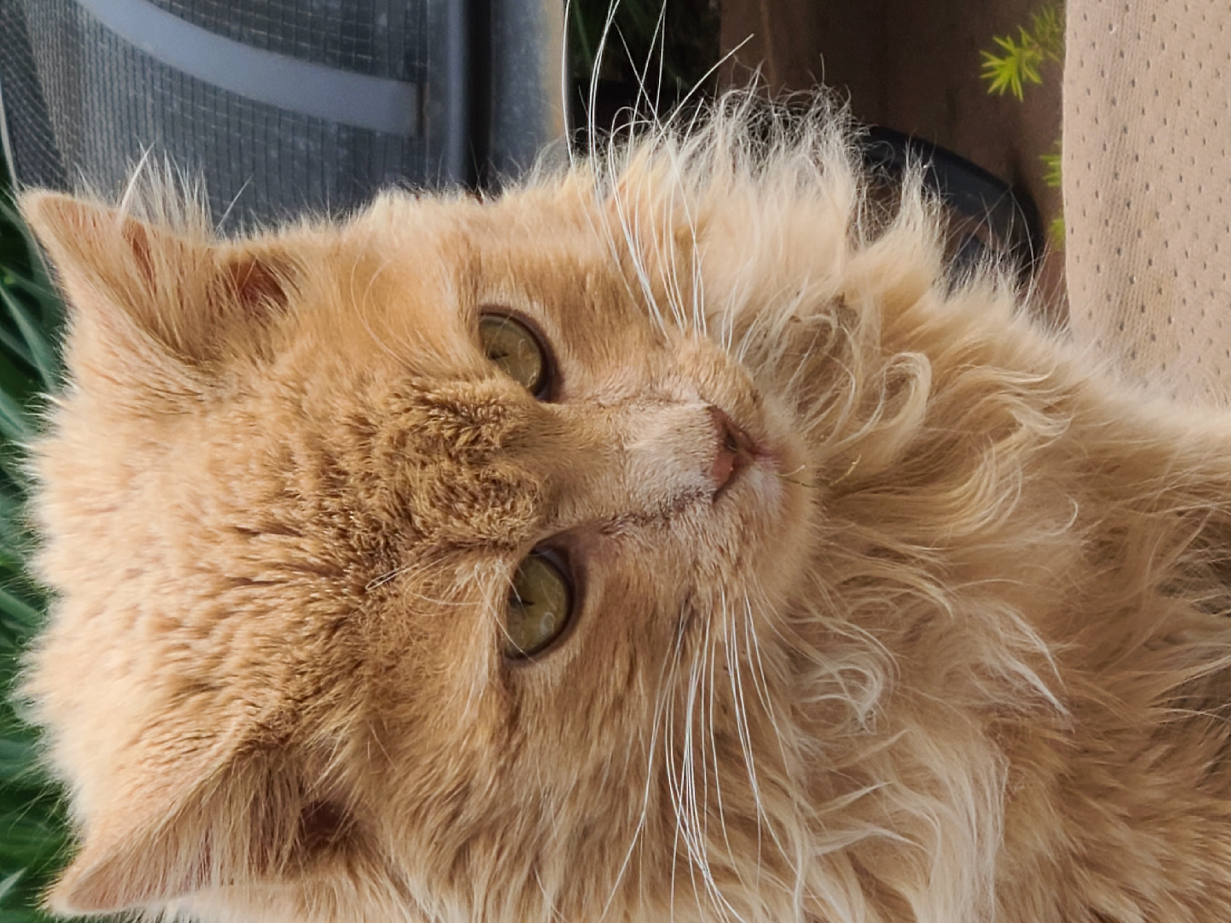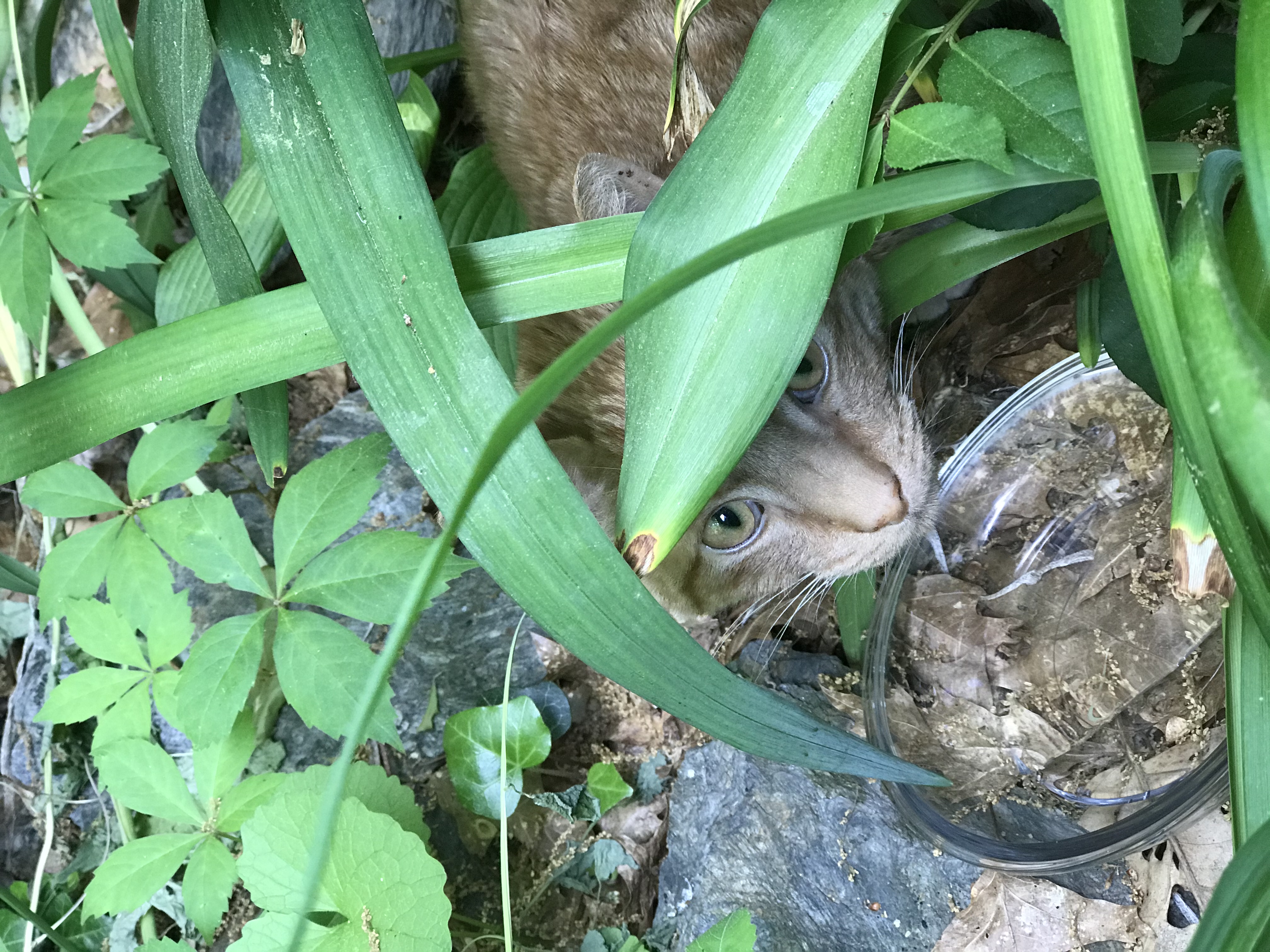 Orange tabby with a colorful collar (red, white and red and peace sign and love) curled up in my daylily flower bed by the deck since, at least, Tuesday morning. Took a few slurps of water but not much movement other than repositioning itself. Doesn’t look good...the overall behavior.