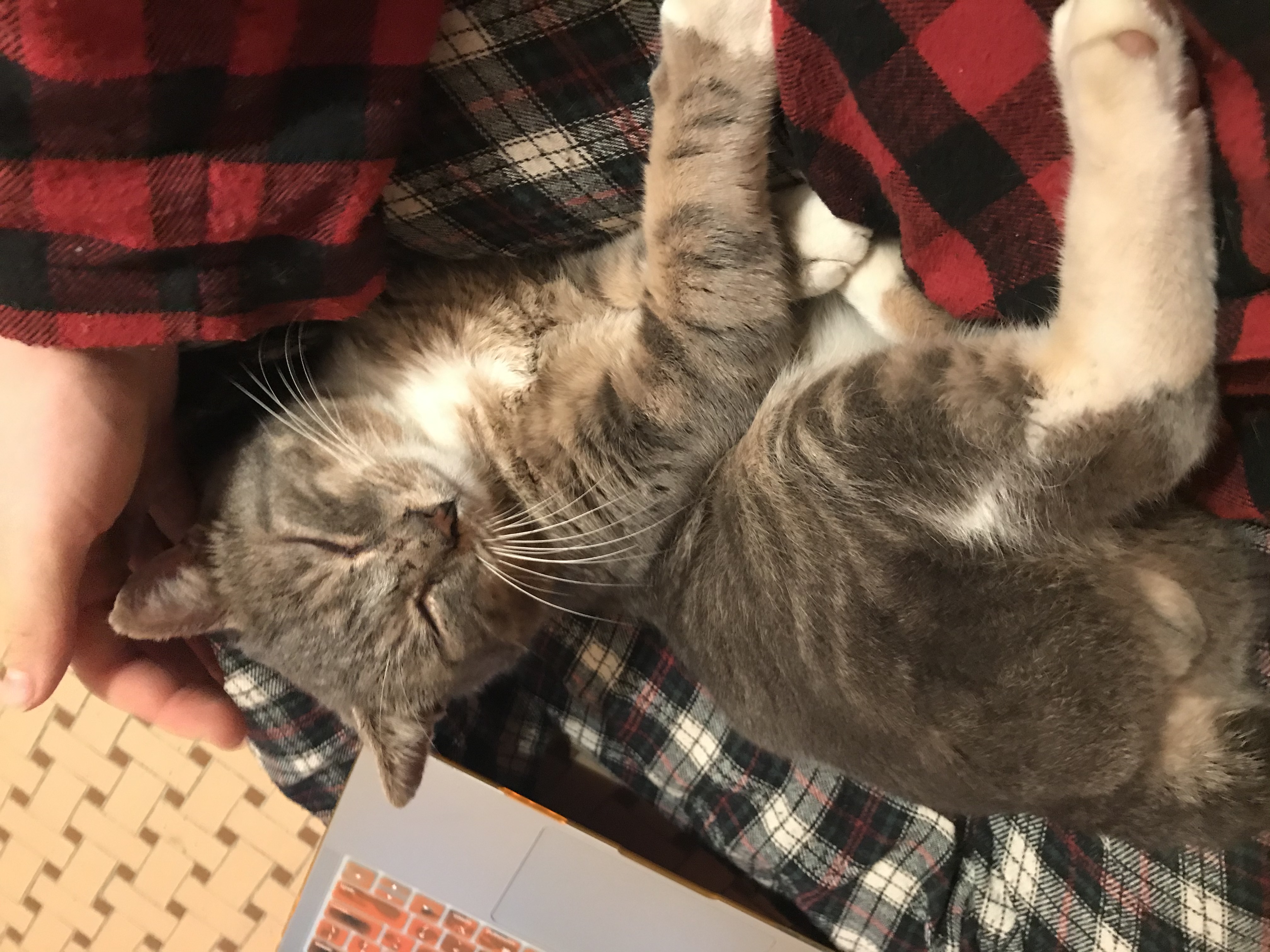 Extremely friendly, petite, gray and white cat. I have been feeding this cat for about 2 weeks. She/he comes around everyday for pets and food, but hasn’t stuck around. I’m worried she is lost.