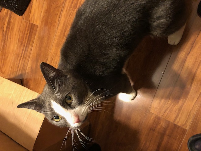 First spotted on December 14-15 in my garage in the Kaisertown area of Montgomery, NY and fed it for a couple of days. On that freezing cold night, I brought the cat into the house--It clearly has an owner and is NOT an outdoor cat. Not sure if it is male or female. Cat is