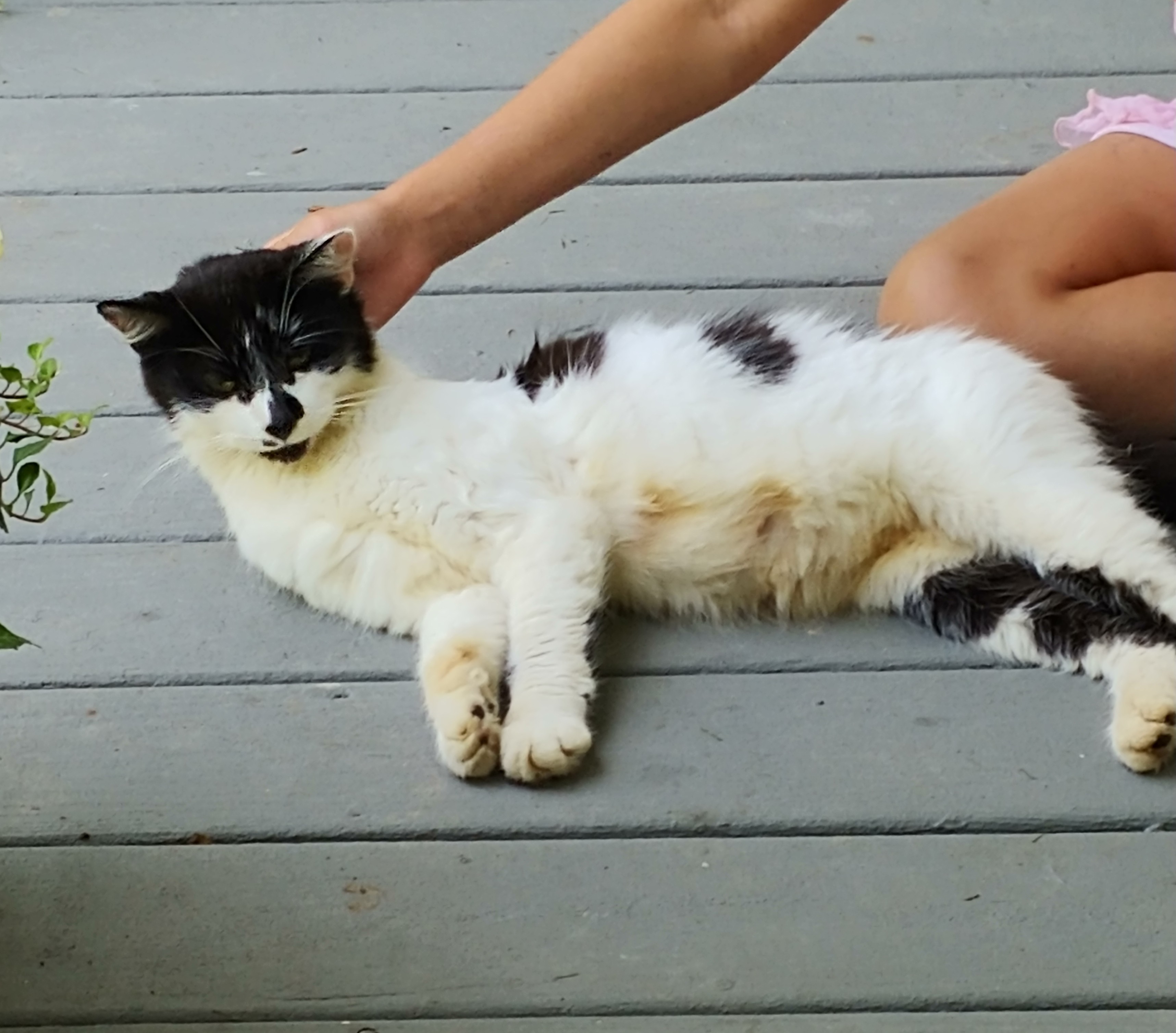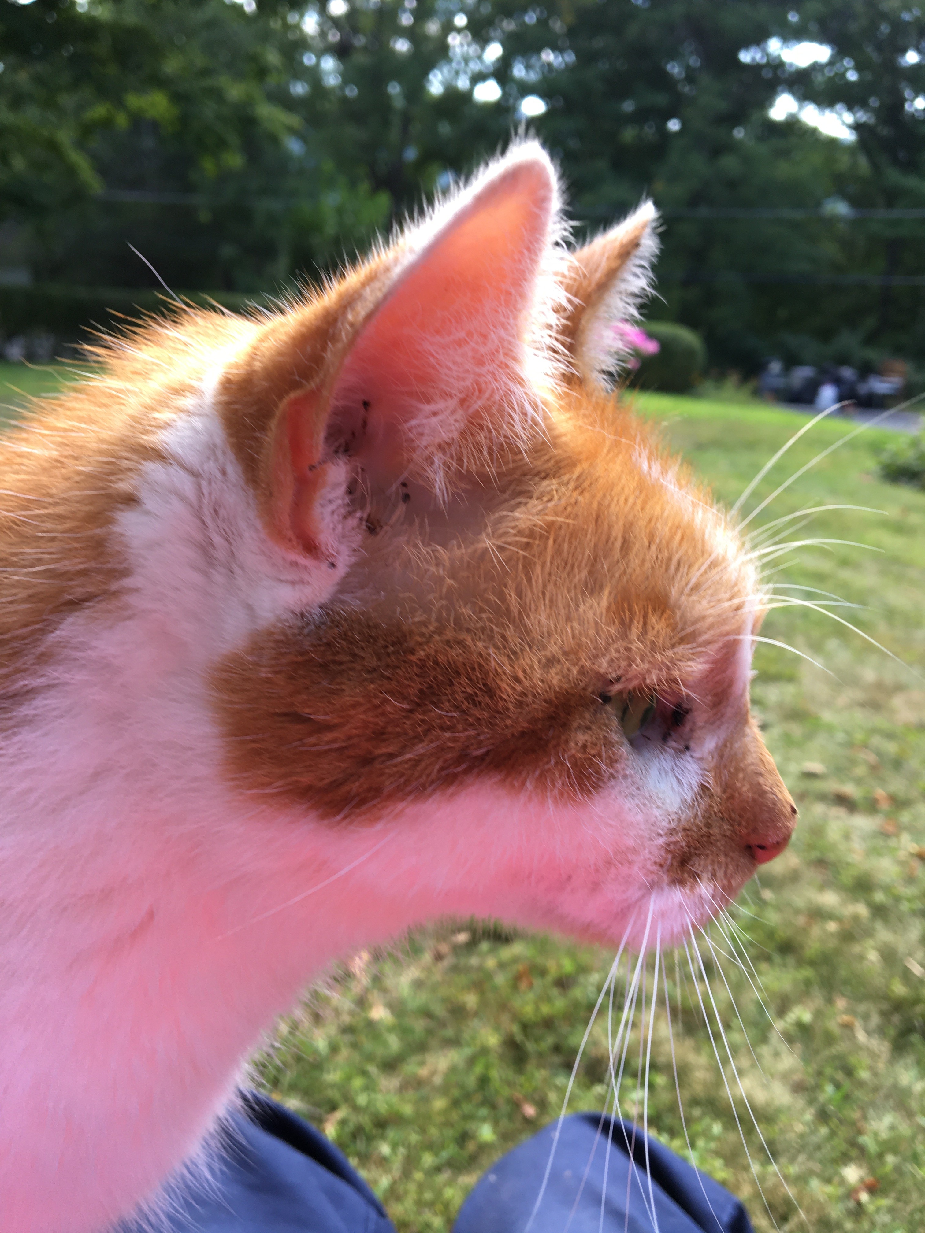 This adorable kitty turned up on our yard a week ago. Initially, I thought he might be feral, because he was quite skittish, but after a short period of time, it was clear he belonged to someone, and is really quite lovable. As much as we have grown fond of him, there is no possibility