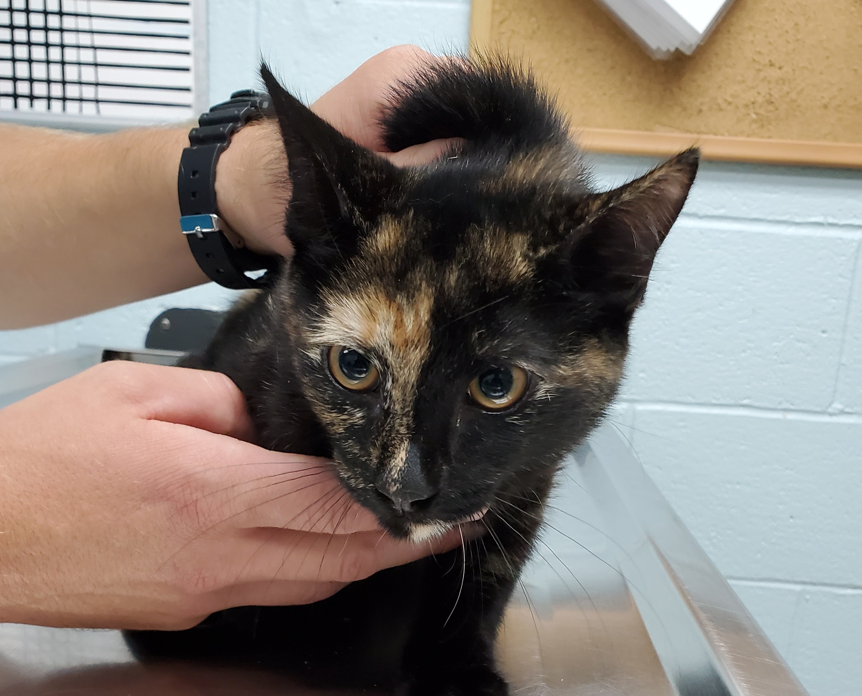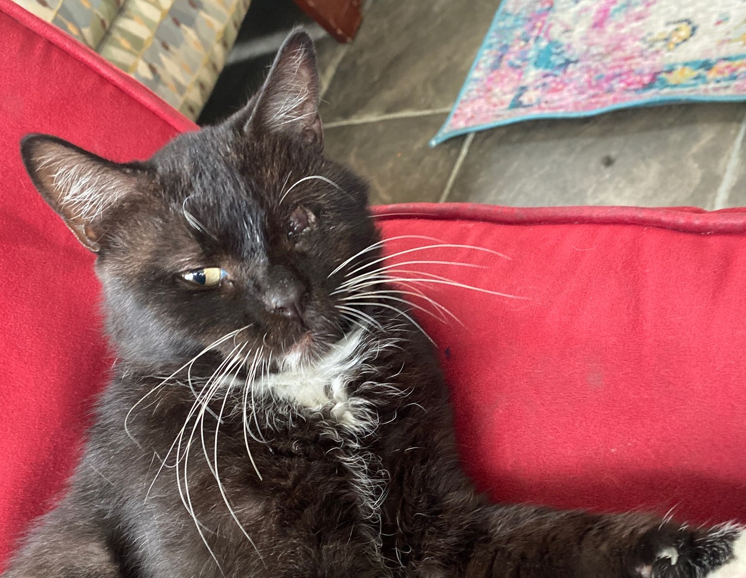 My daughter who is a student at SUNY New Paltz, found a young Male unneutered cat. She brought him in, fed him and gave him water. He has a left eye injury. He is definitely not wild, too friendly. Has to be someone's kitten.