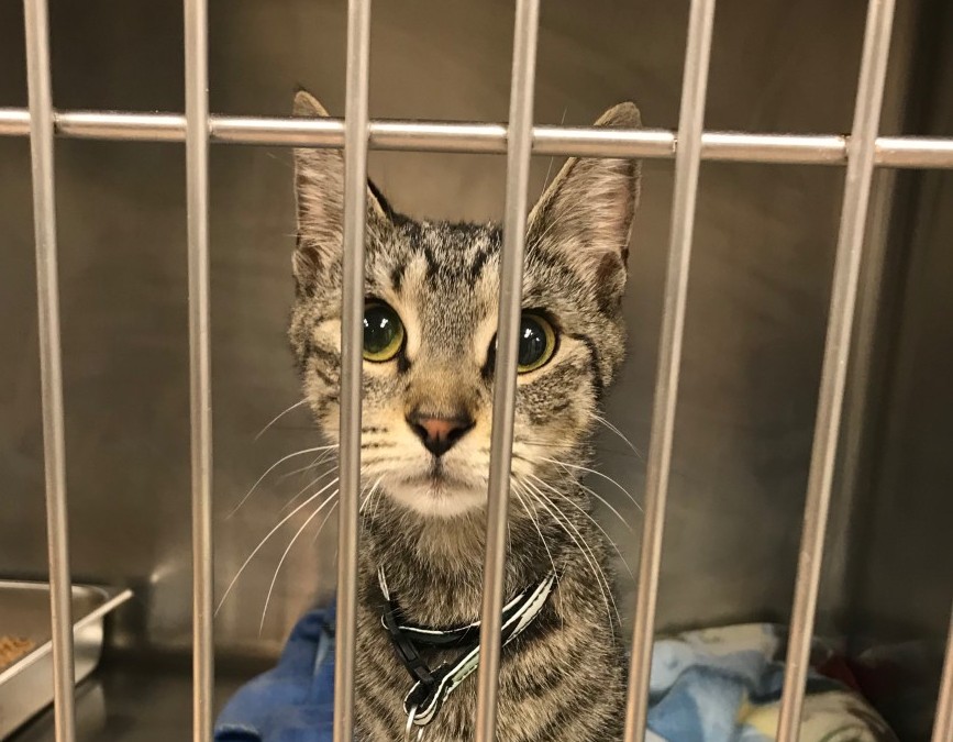 Found on Thompson/Winnekee street in Poughkeepsie, NY, on 8/15 around 6 am by good samaritan. Female brown tiger, has collar!