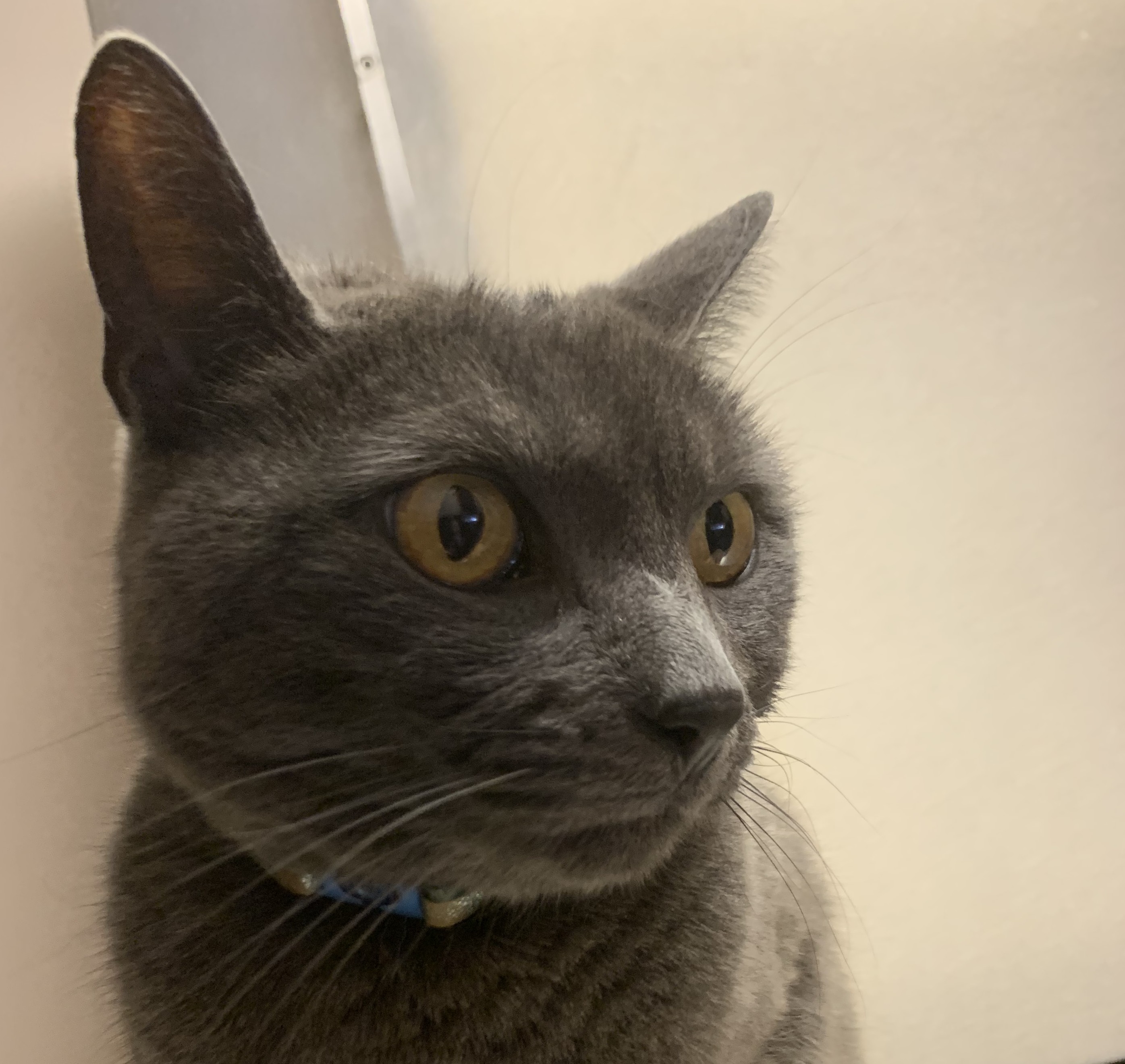 Hi! We found a grey cat with a blue sparkly collar today while on our way to Woodbury Commons. She’s around 4-5 y/o and unfortunately not chipped. She was found on Smithclove Rd near Andre Dr. in Highland Mills, New York around 2:00 pm this afternoon. She’s very friendly and looks well taken care of.