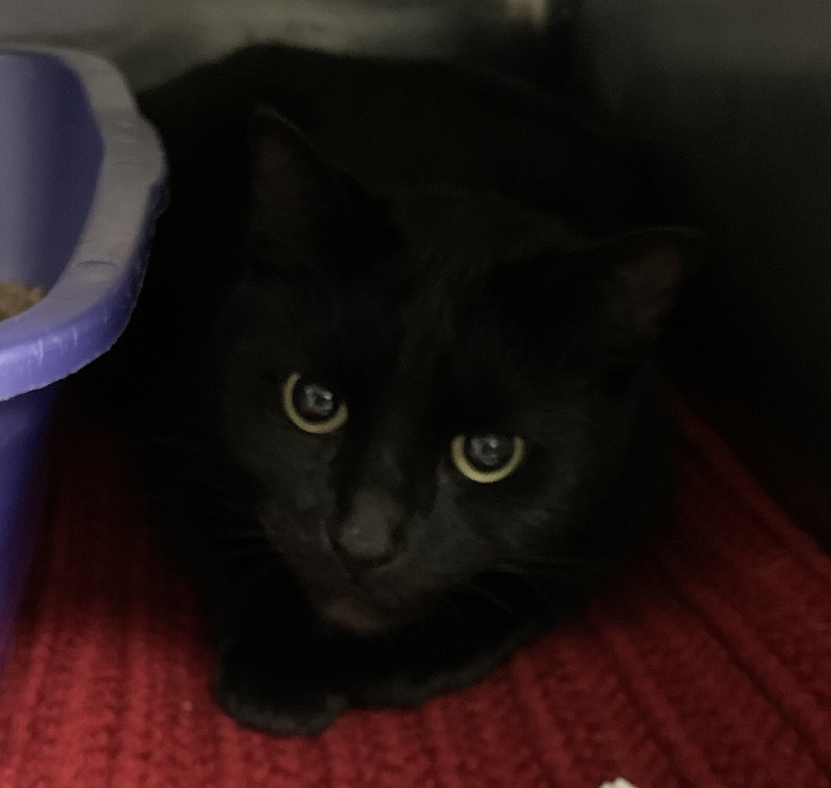 Female black domestic shorthair found on Deyo St. in Tillson, NY on 11/15/19. No collar, no microchip.