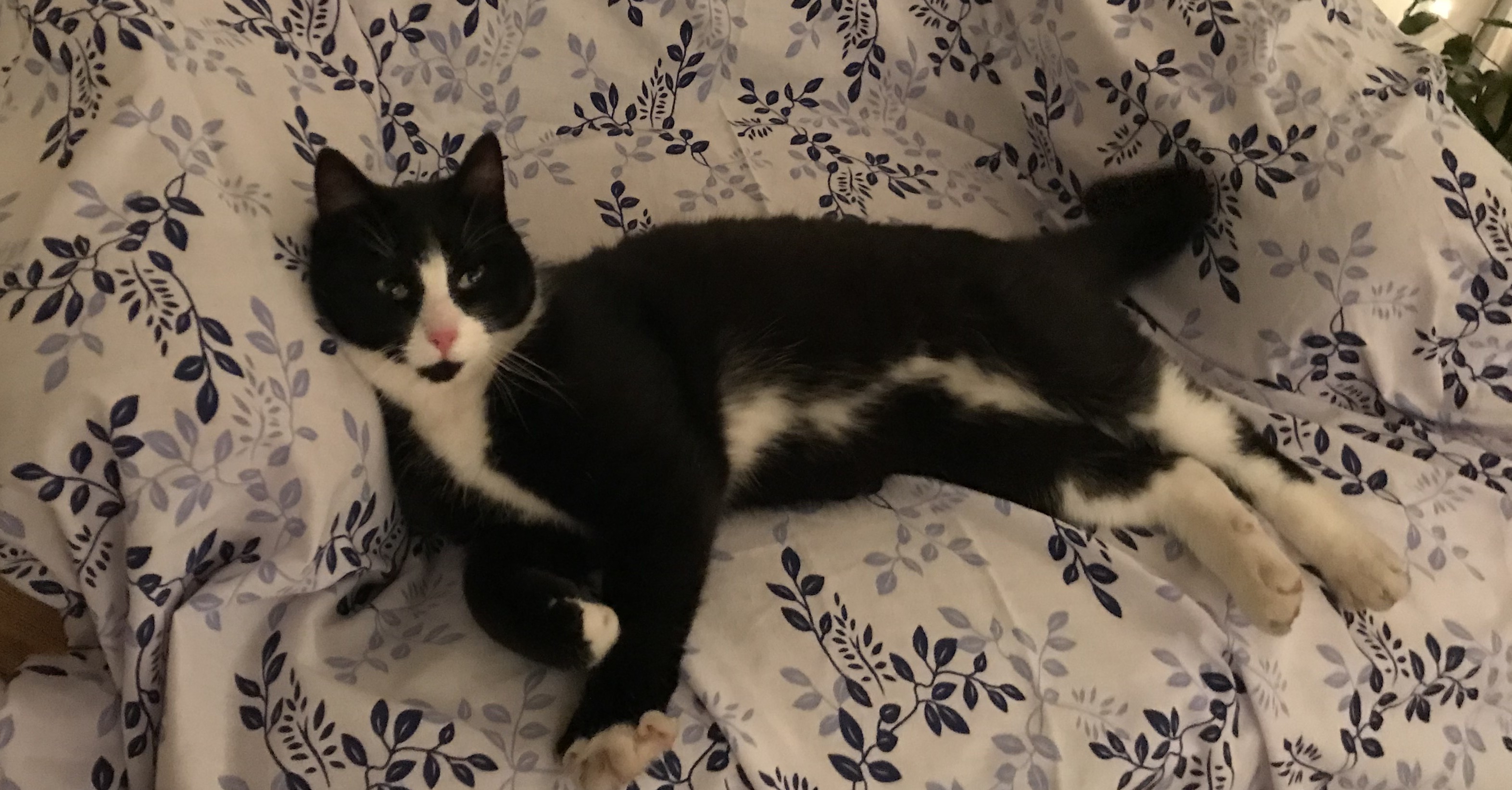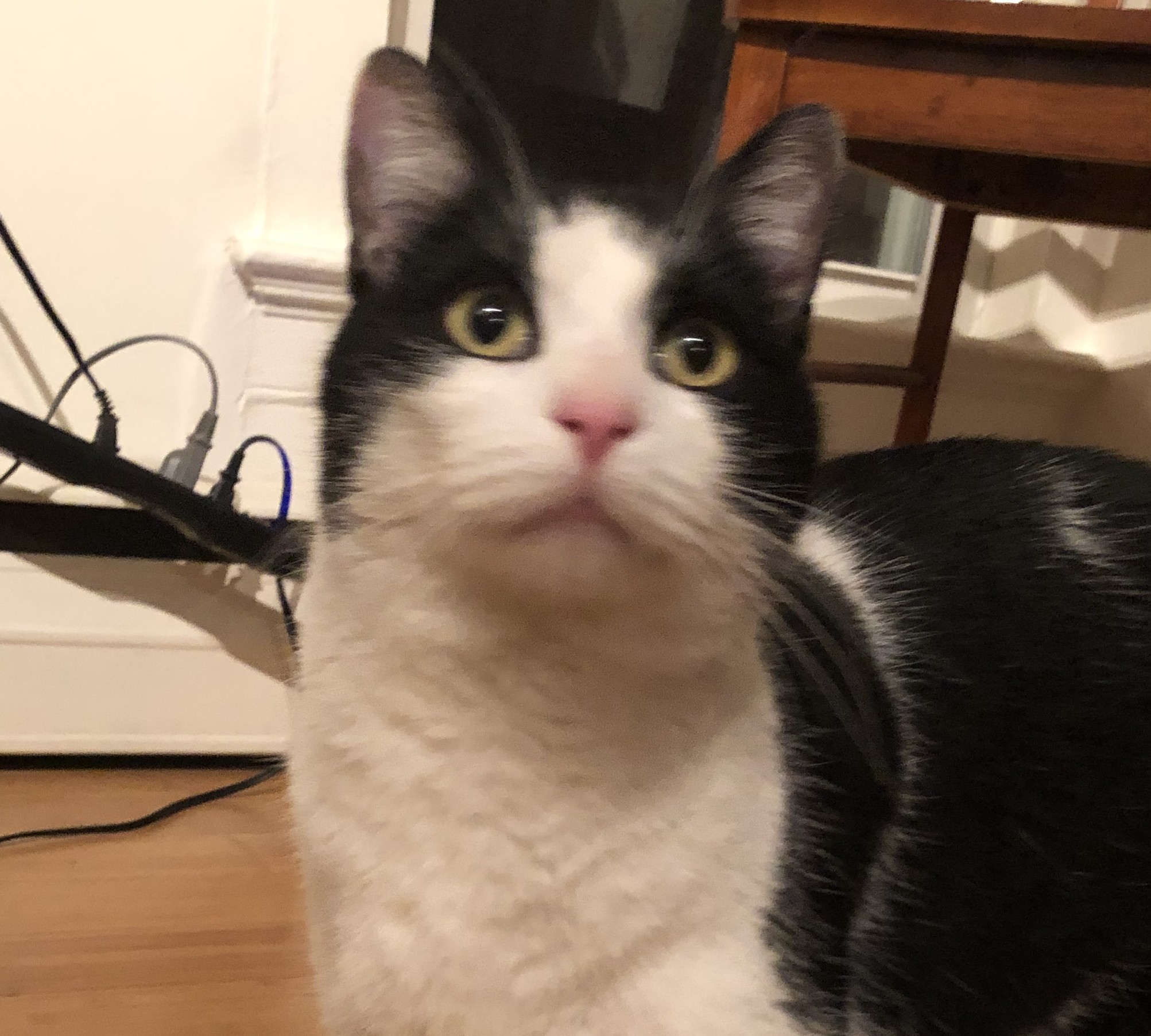 Super friendly, tried to follow friends into their house. Was very hungry and thirsty. Knows how to use a litter box. Playful and very vocal.