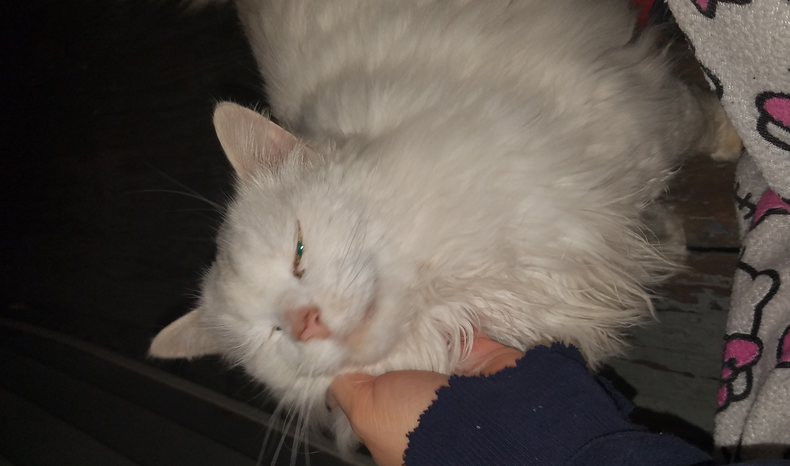 Long-haired white cat has been coming around for the past few weeks. Super friendly with us and my 2 daughters. I have been feeding it, but it is starting to become dirty and the long hair is becoming matted. I believe it had a home at first, but I'm afraid someone may have just put
