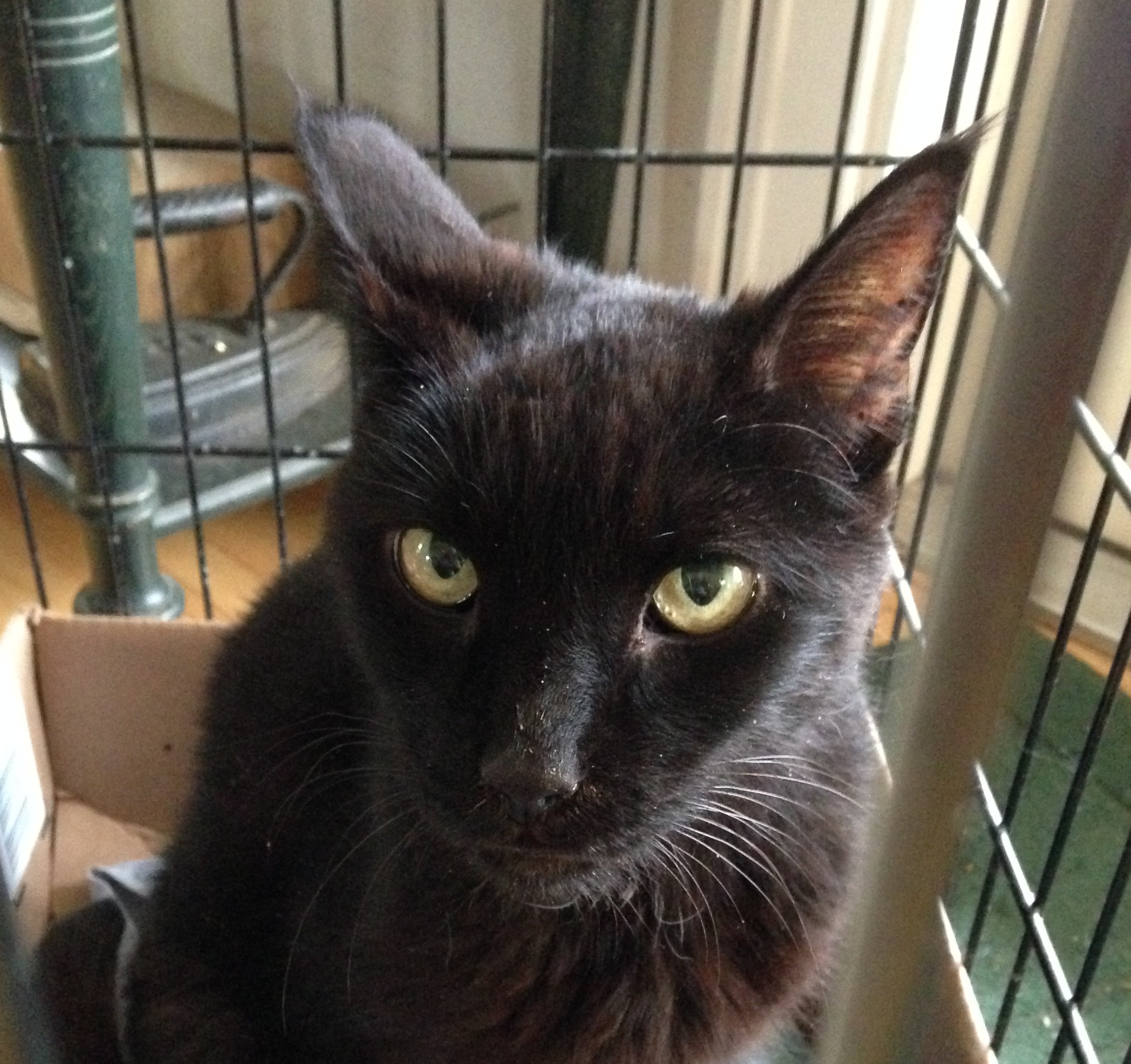 Found adult female cat, very sweet and friendly. Dark brown short coat with reddish highlights. Yellowish/Greenish eyes. Small to medium size. Very emaciated. We have 3 cats and cannot keep her.