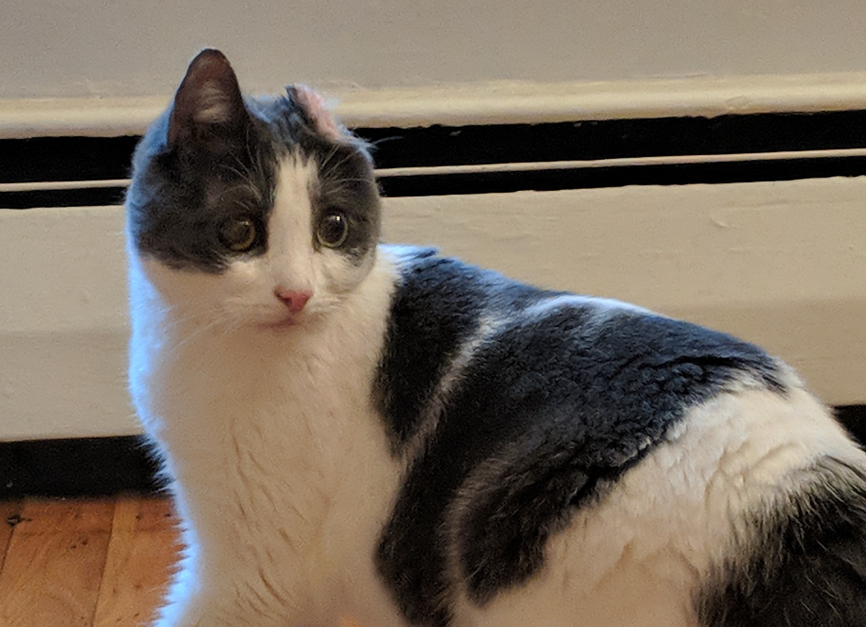 This sweet little thing was found waiting outside of one of the buildings at Town and Country Condos in New Paltz. Had been sitting there overnight, not afraid of people. Will be taken to the SPCA today if owner isn't found. Contact me if you know if this is someone's pet!