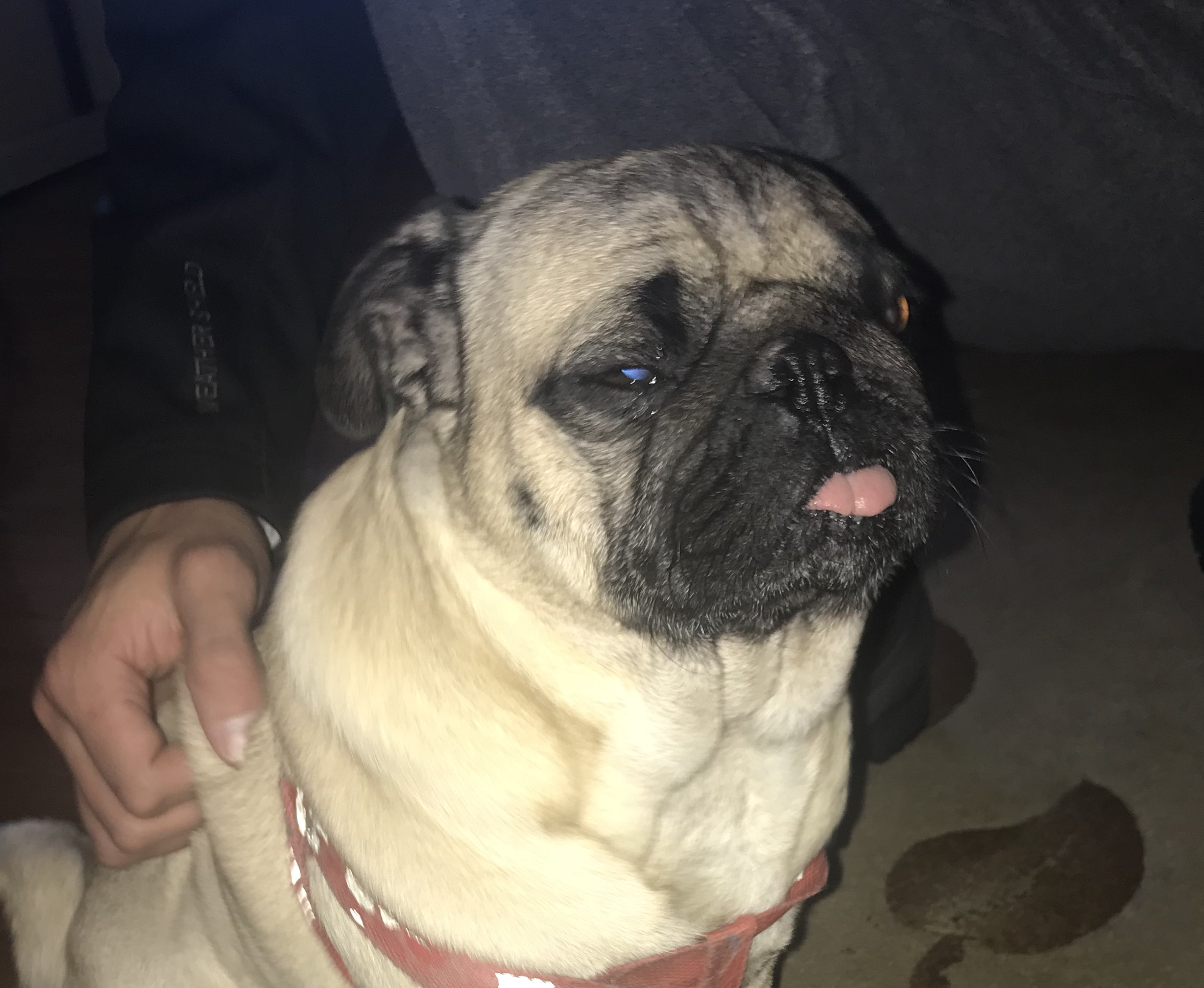 We found him wandering around on the street outside our house.