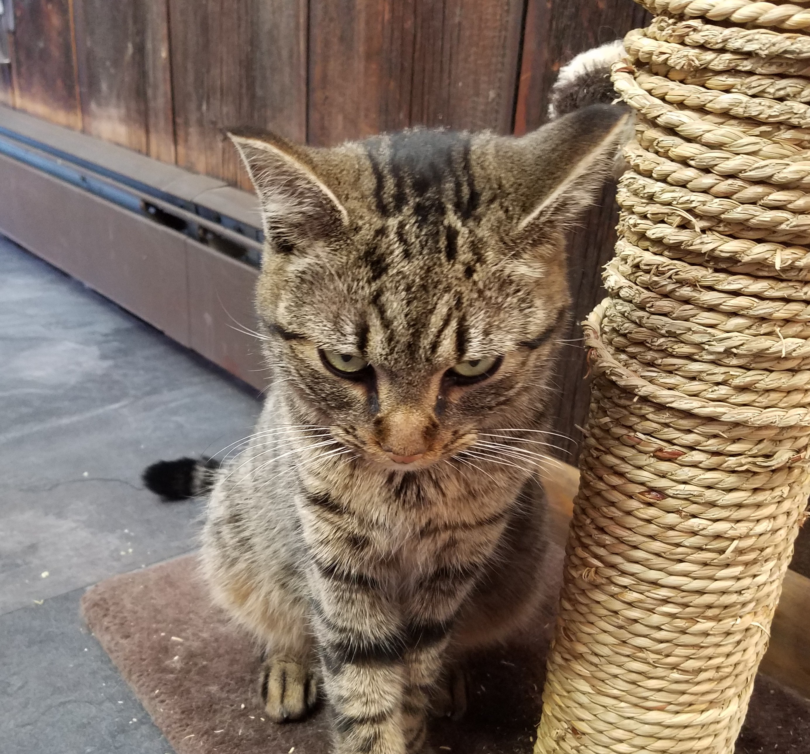 This gray cat has been coming to our house these past three frigid nights. Growing increasingly friendly and allowed us to pet.