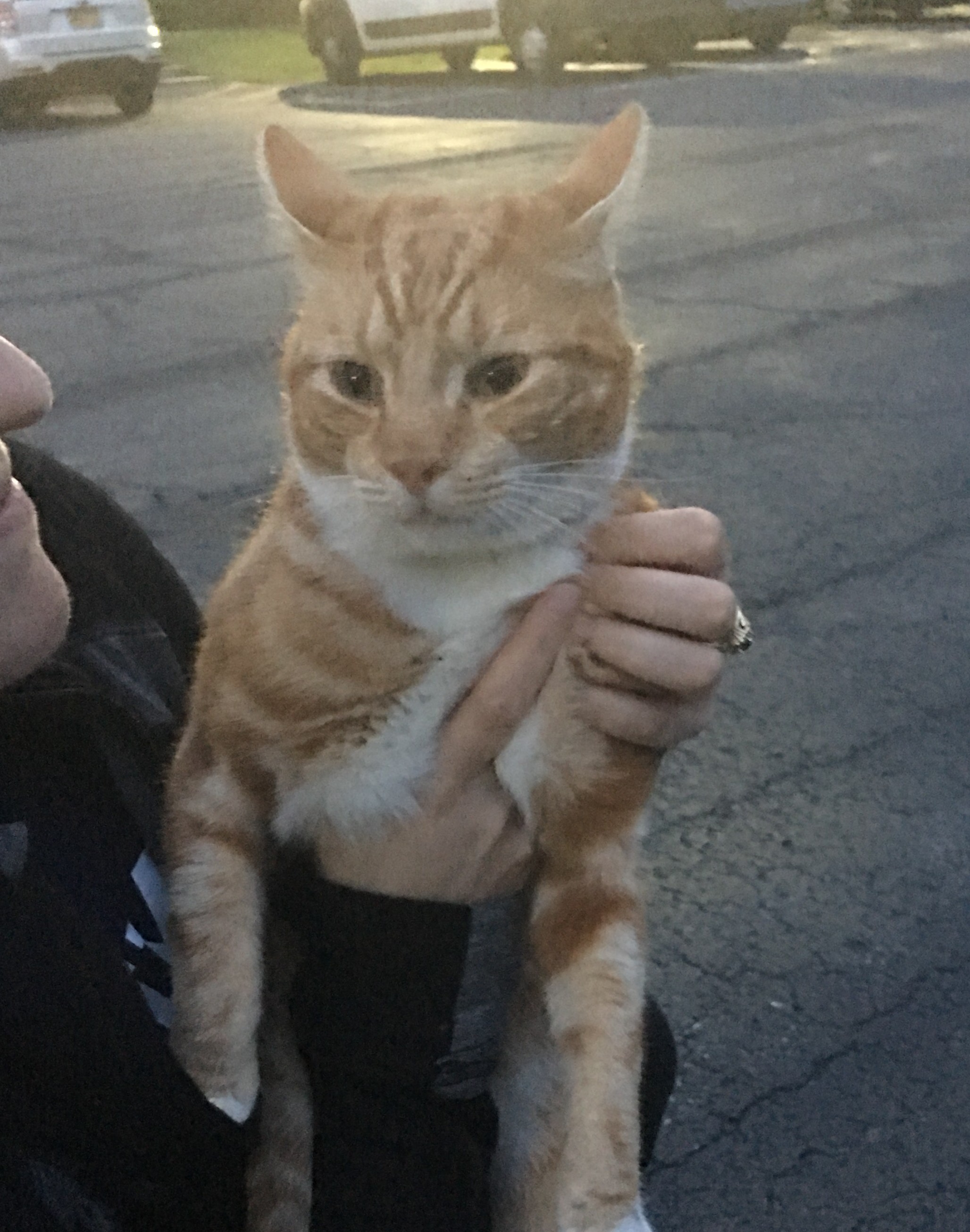 Found cat on Peekskill Hollow Rd in Putnam Valley between Siefert and Town Line. Been hanging around the house for about 2 weeks, skinny. Family who is feeding cat is moving in about a month and if the owner isn't found, this sweet heart will need a home.