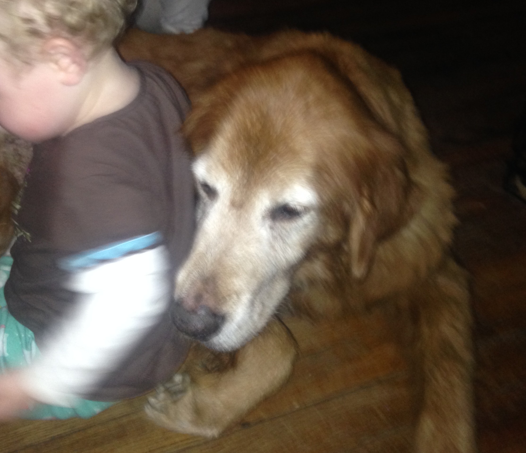 Male golden retriever, older in age, starved to the point where bones are sticking out. Has a hard time walking, completely infested with fleas. Extremely friendly and great with kids.