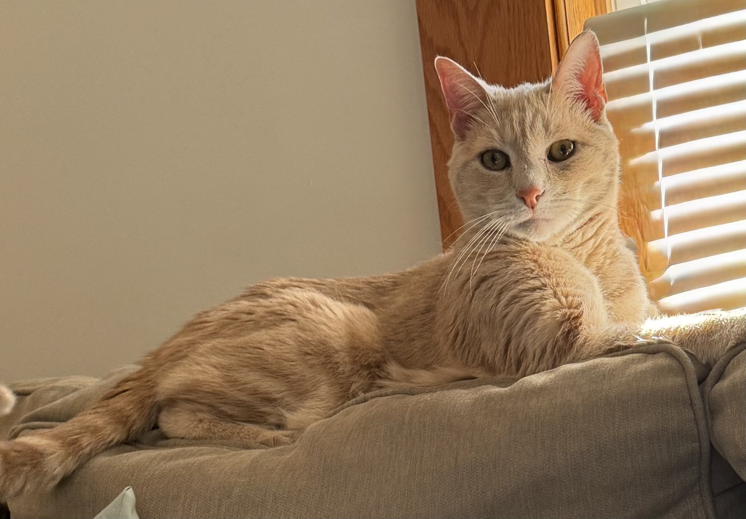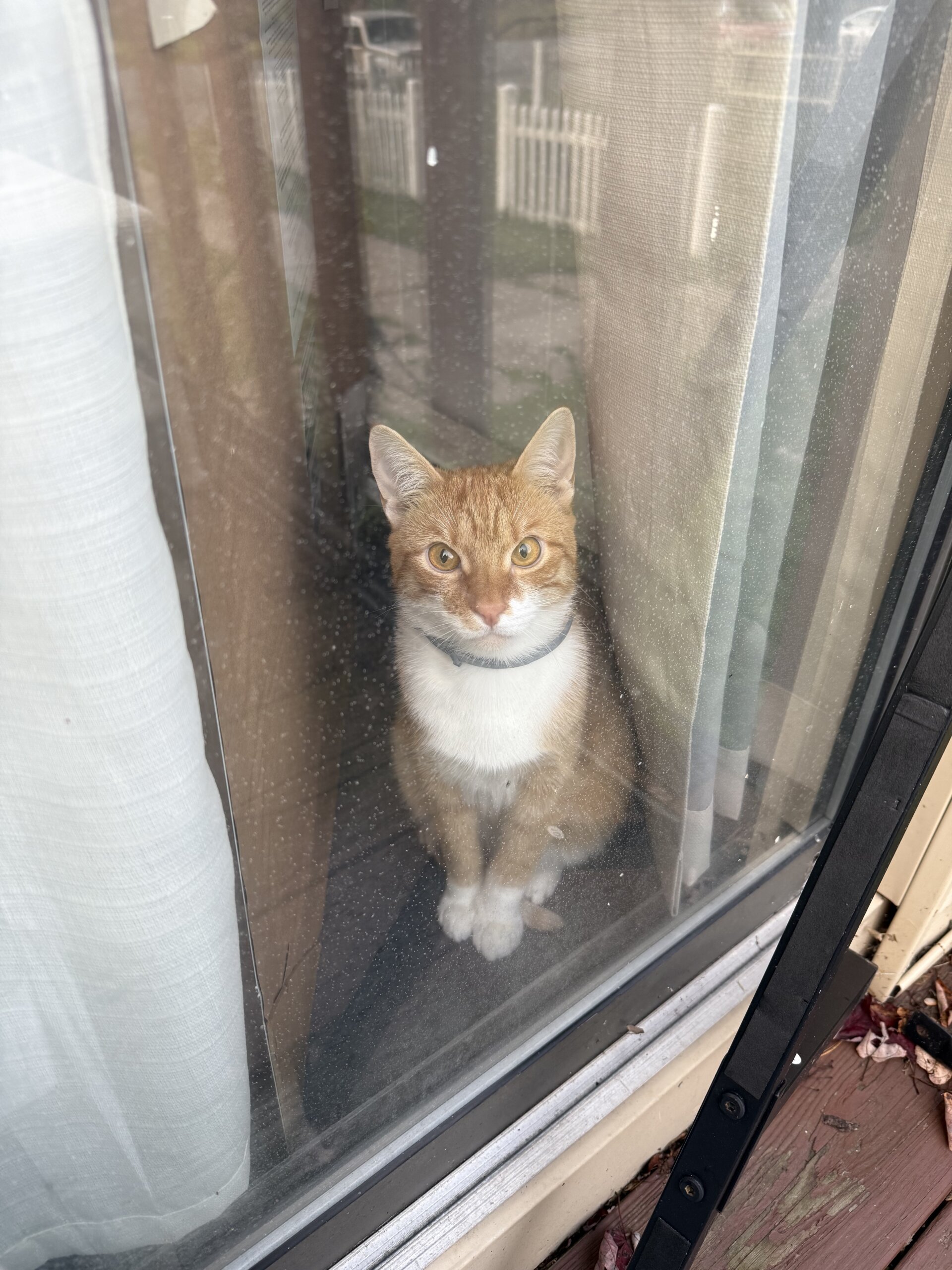Orange and white Tabby …. Skittish with strangers but friendly at the same time. Meows a lot. Such a mush at home. I’m heartbroken.
