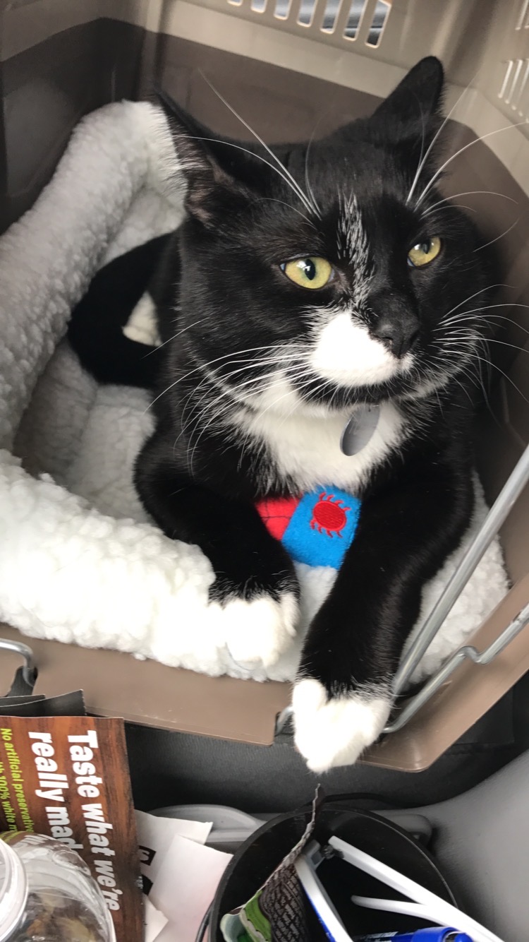Mugsy has always been an indoor/ outdoor cat- has sometimes been gone for a few days but I’m worried because he’s older now and has been gone since Saturday. He is friendly!