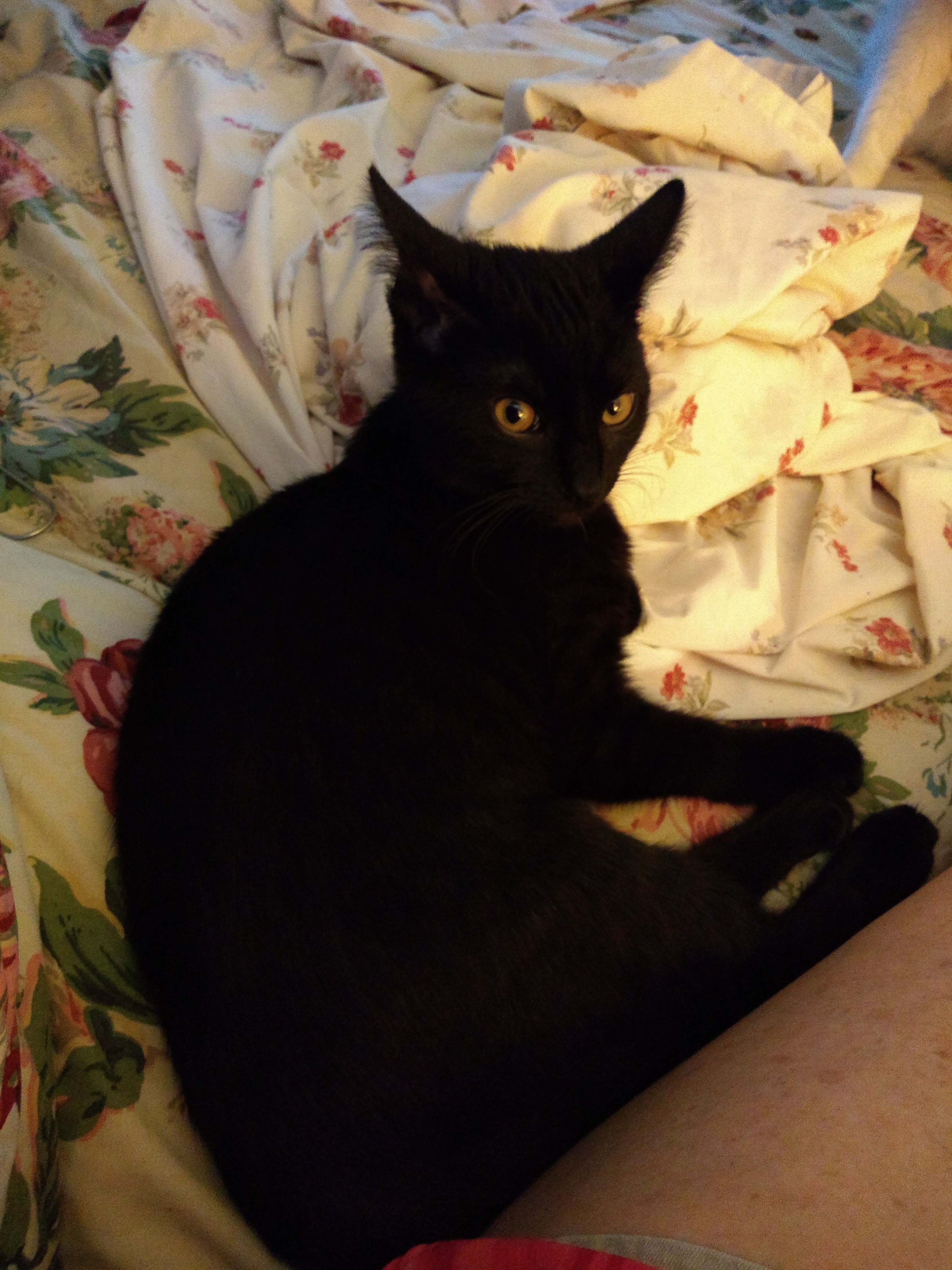 On around August 26th I was taking my cat to the vet in Copake when he jumped from the carrier. He is very friendly, he likes to make noise and talk, he’s one year old, black and white, spayed male with beautiful yellow eyes.