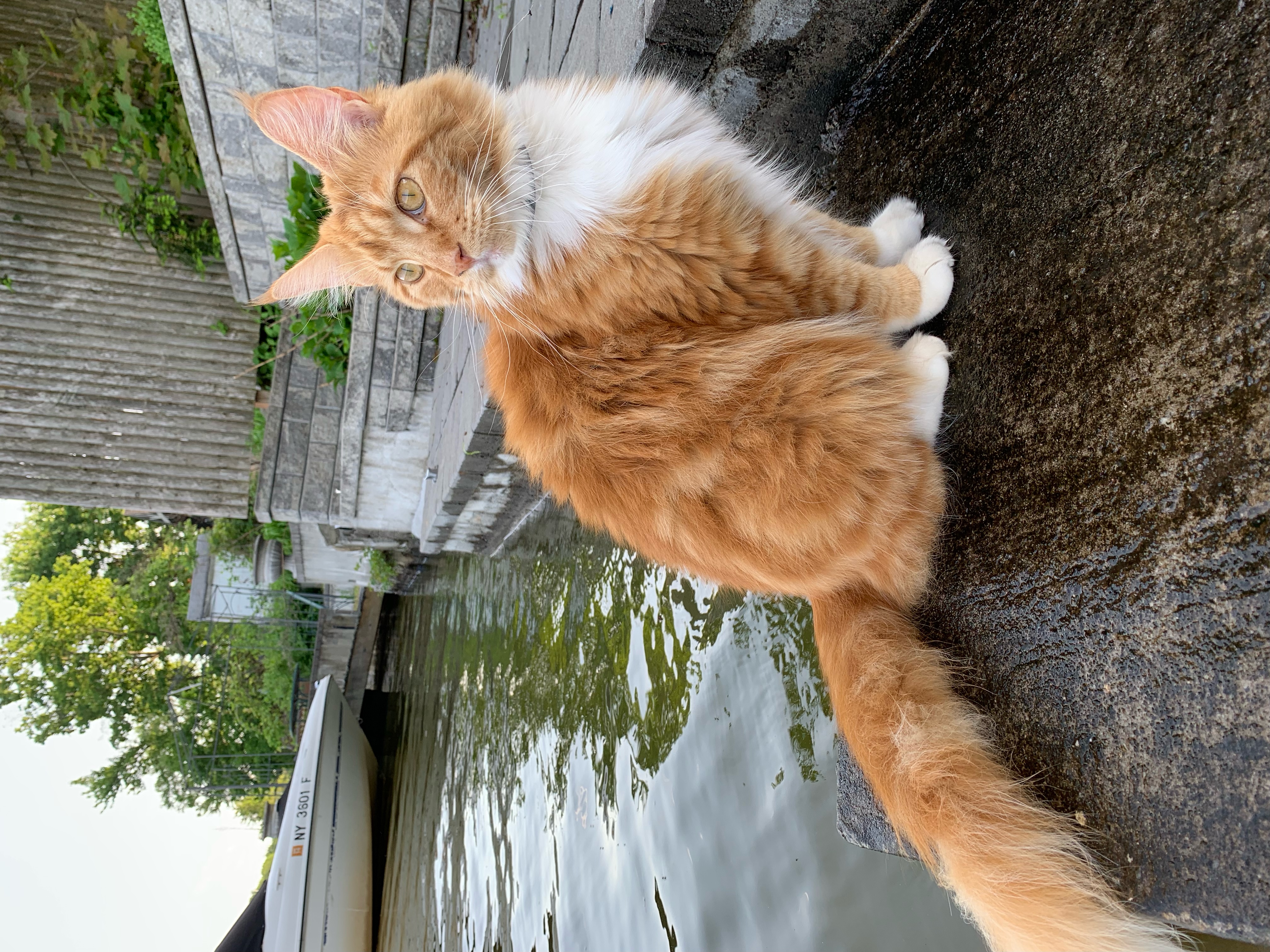 Red tabby Maine Coon cat--with a bushy tail. friendly. she weighs 11 lbs.