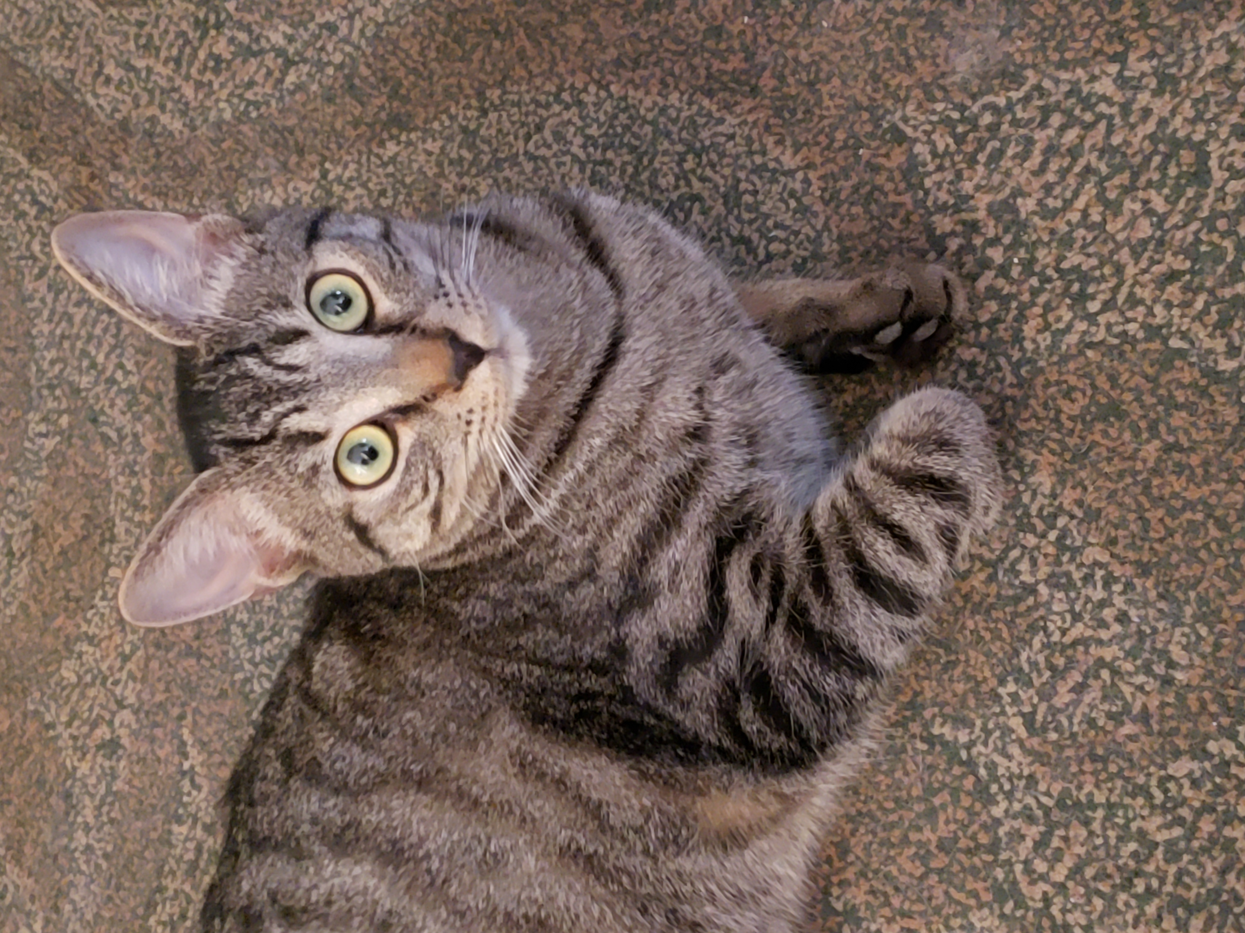 Toby doesn't know his name well. Former feral cat, we adopted him last November. Inside cat now.